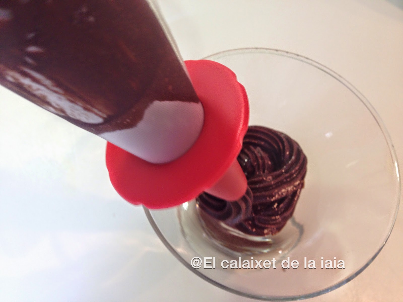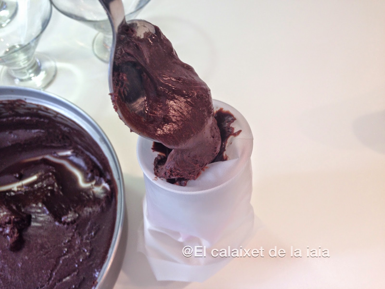rellenamos con el chocolate que aunque Nigella la llama mousse, y haberla preparado en un principio tal y como describe en su libro, yo no le encuentro la esponjosidad de una mousse y por eso la llamo crema