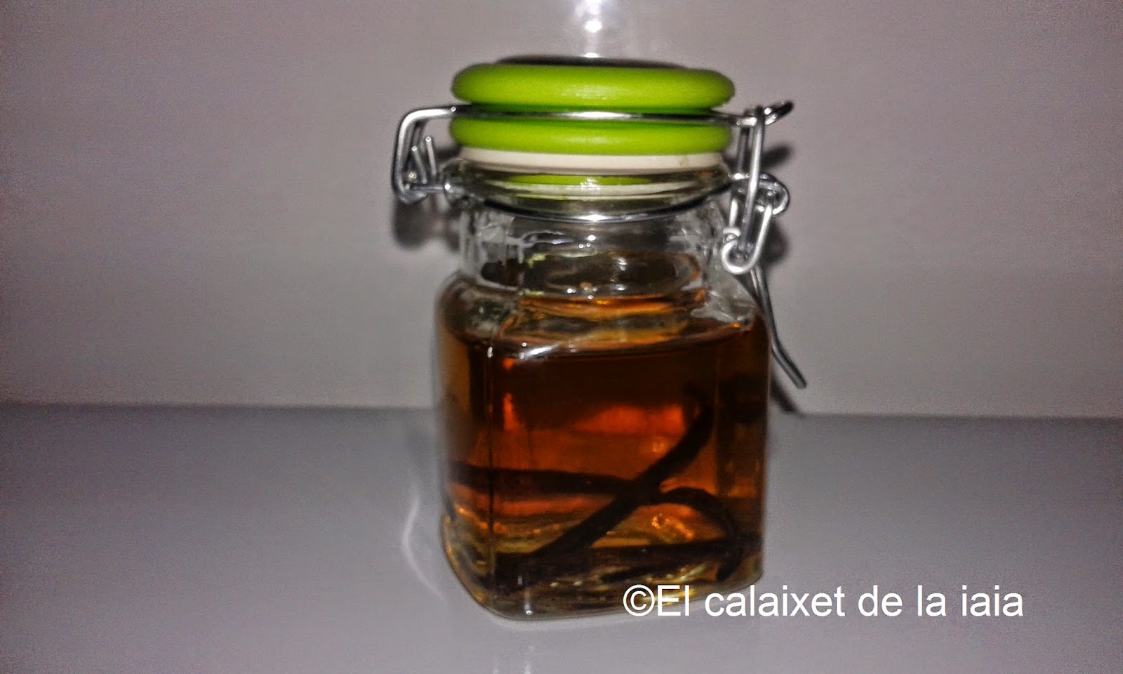 Dejaremos el frasco en un sitio fresco y oscuro, moviendo de vez en cuando para evitar que haga poso, aproximadamente un mes. Pasado éste tiempo tendremos una riquísima y barata esencia de vainilla que irá cambiando poso a poco de color desde el dorado a un color café intenso.