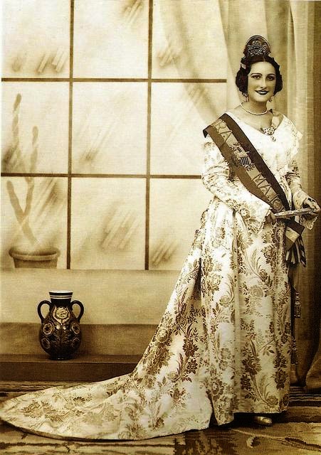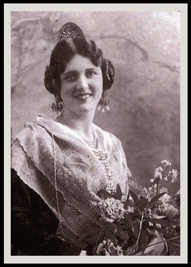 Señorita Ángels Algarra Azura, de la falla Plaza de Calatrava fue la Reina de las fallas año1931. Fotografia de Carmen Algarra y González.