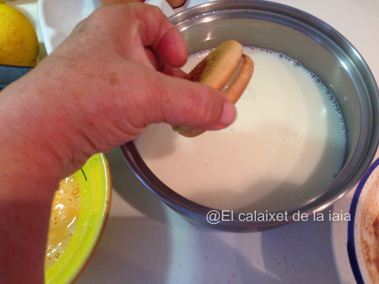 Ponemos la leche a entibiar para remojar las galletas