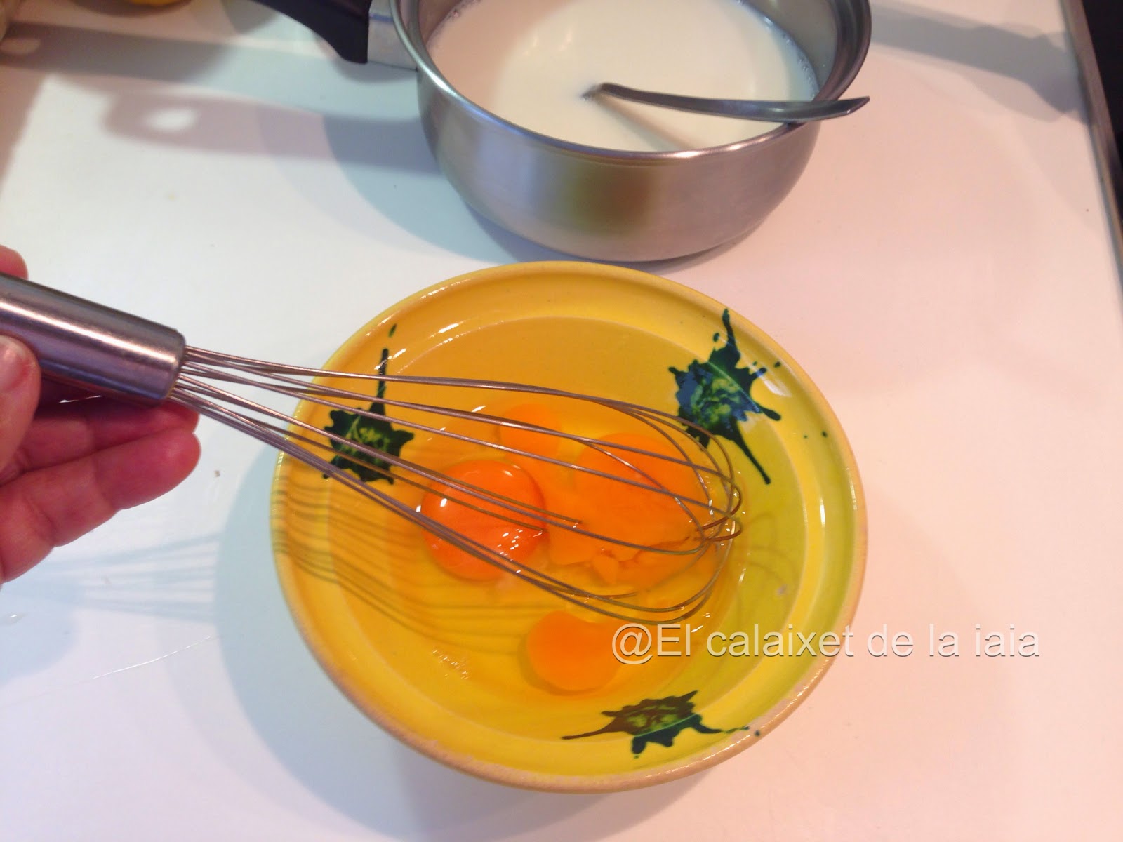 Hemos de comenzar preparando una crema pastelera para que se vaya enfriando, aquí tenéis el paso a paso detallado de una crema pastelera fácil https://elcalaixetdelaiaia.es/crema-pastelera-facil-paso-pasoque podéis preparar con antelación, en ésta ocasión yo he puesto la mitad de ingredientes.