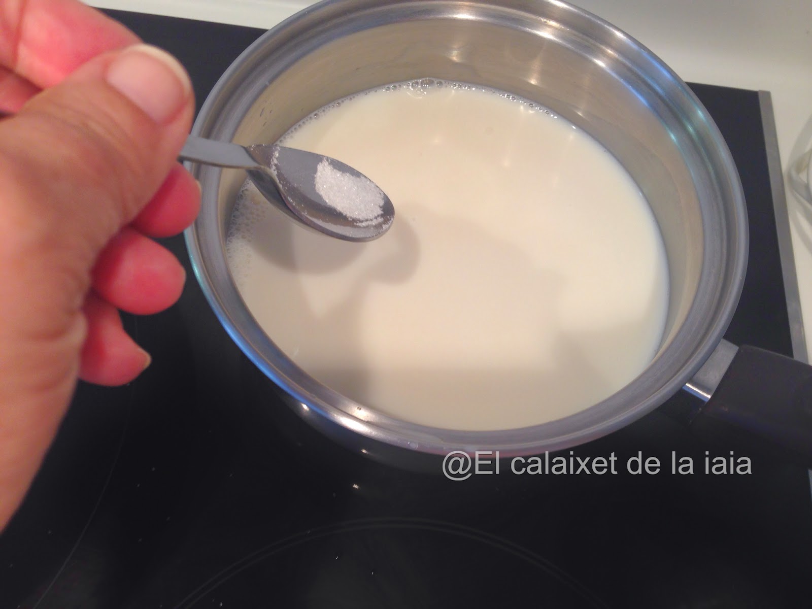 y dos cucharadas soperas de azúcar,removemos, entibiamos y retiramos del fuego