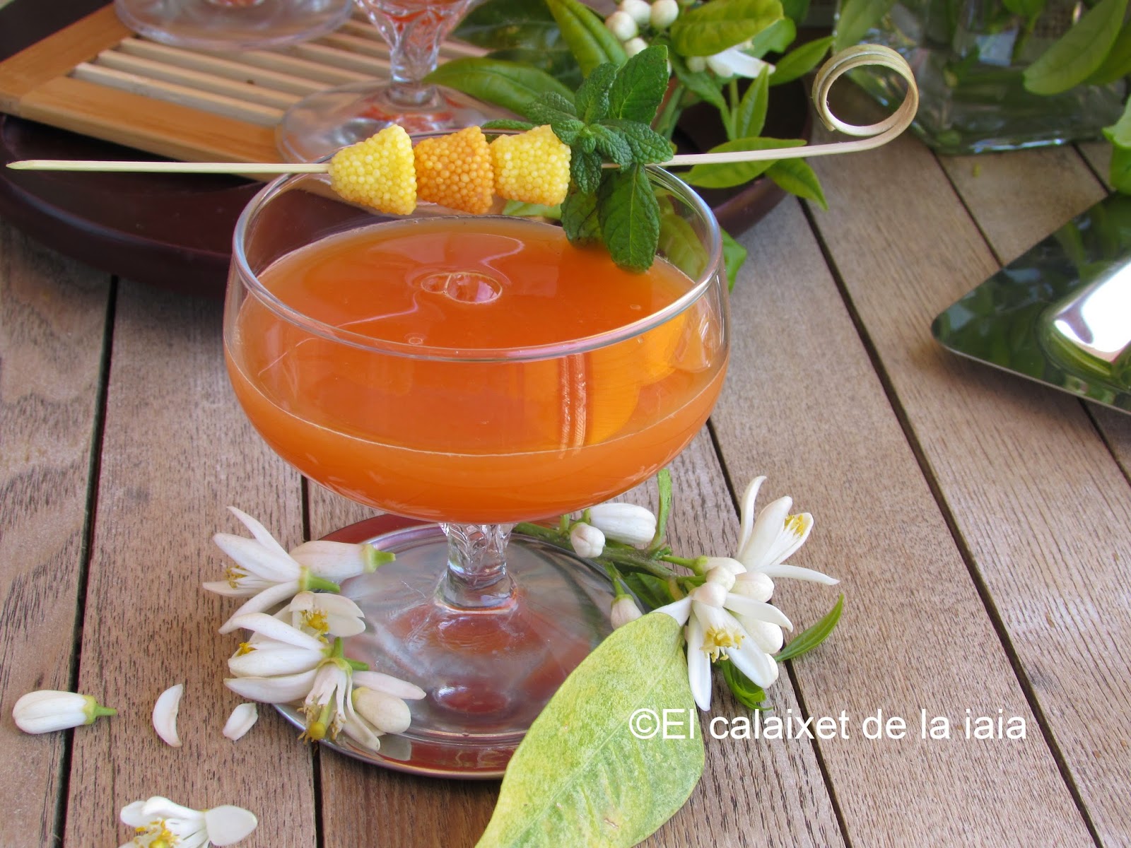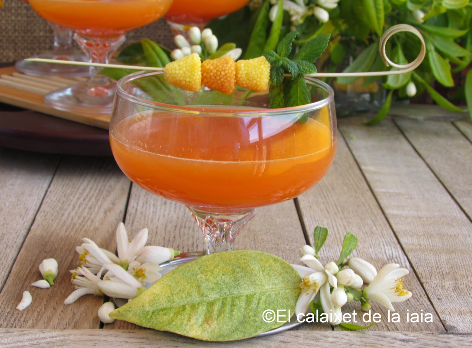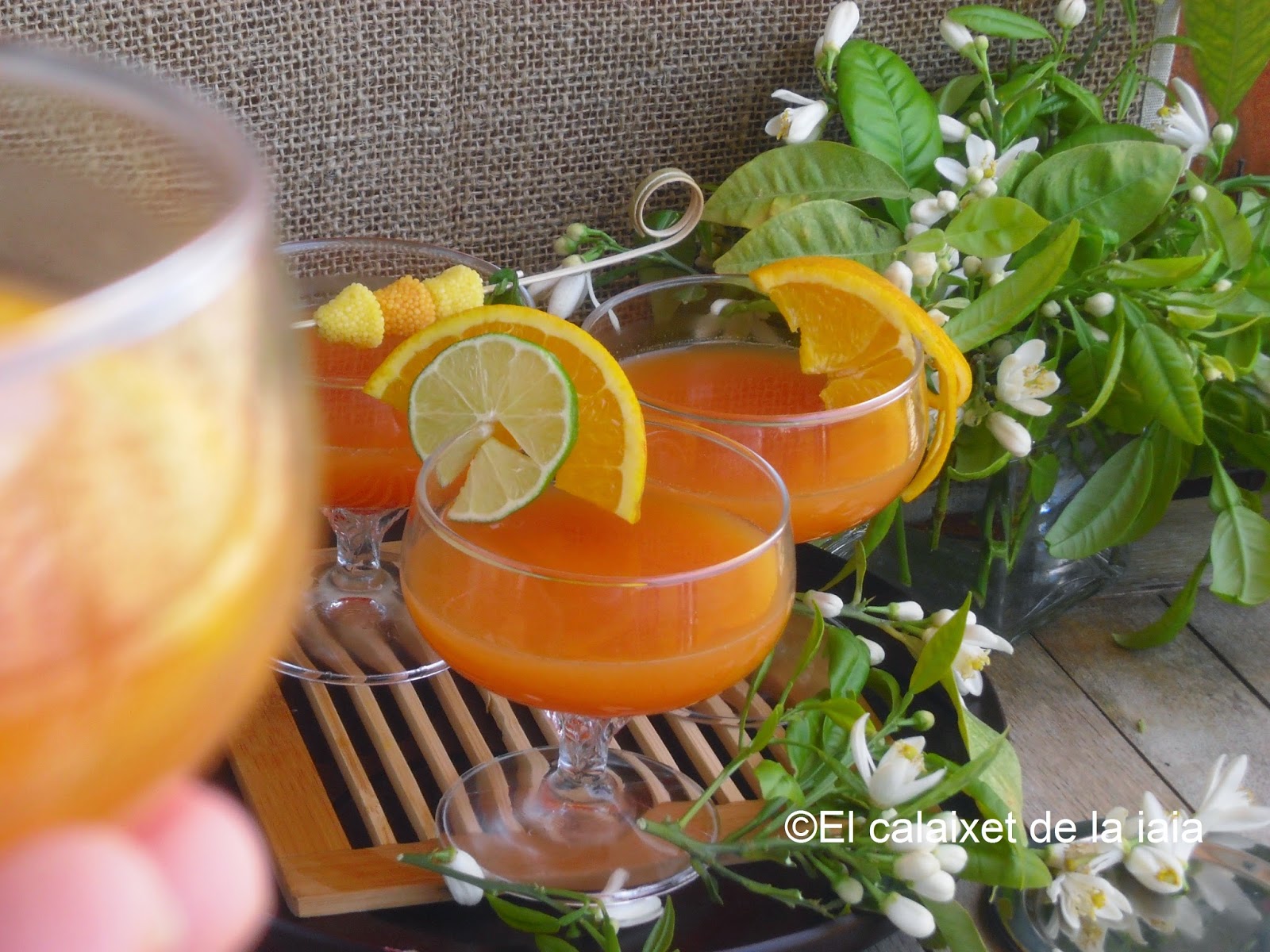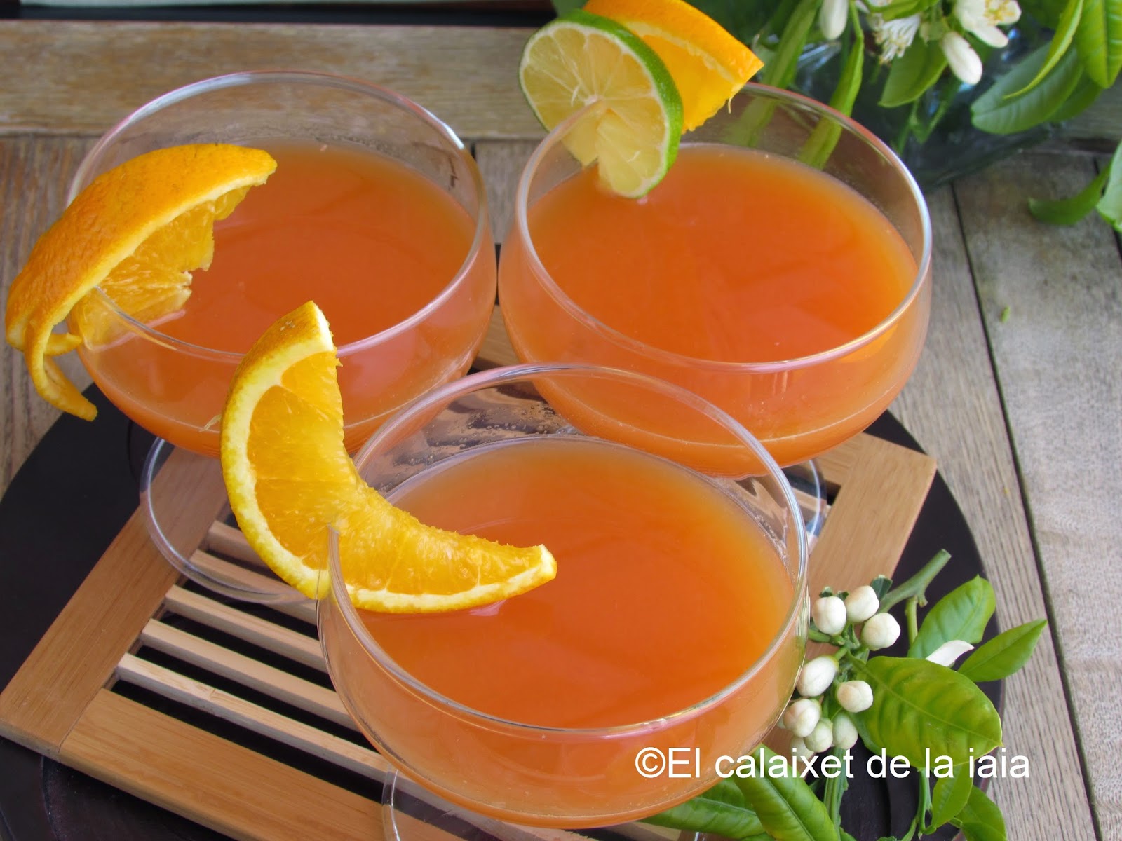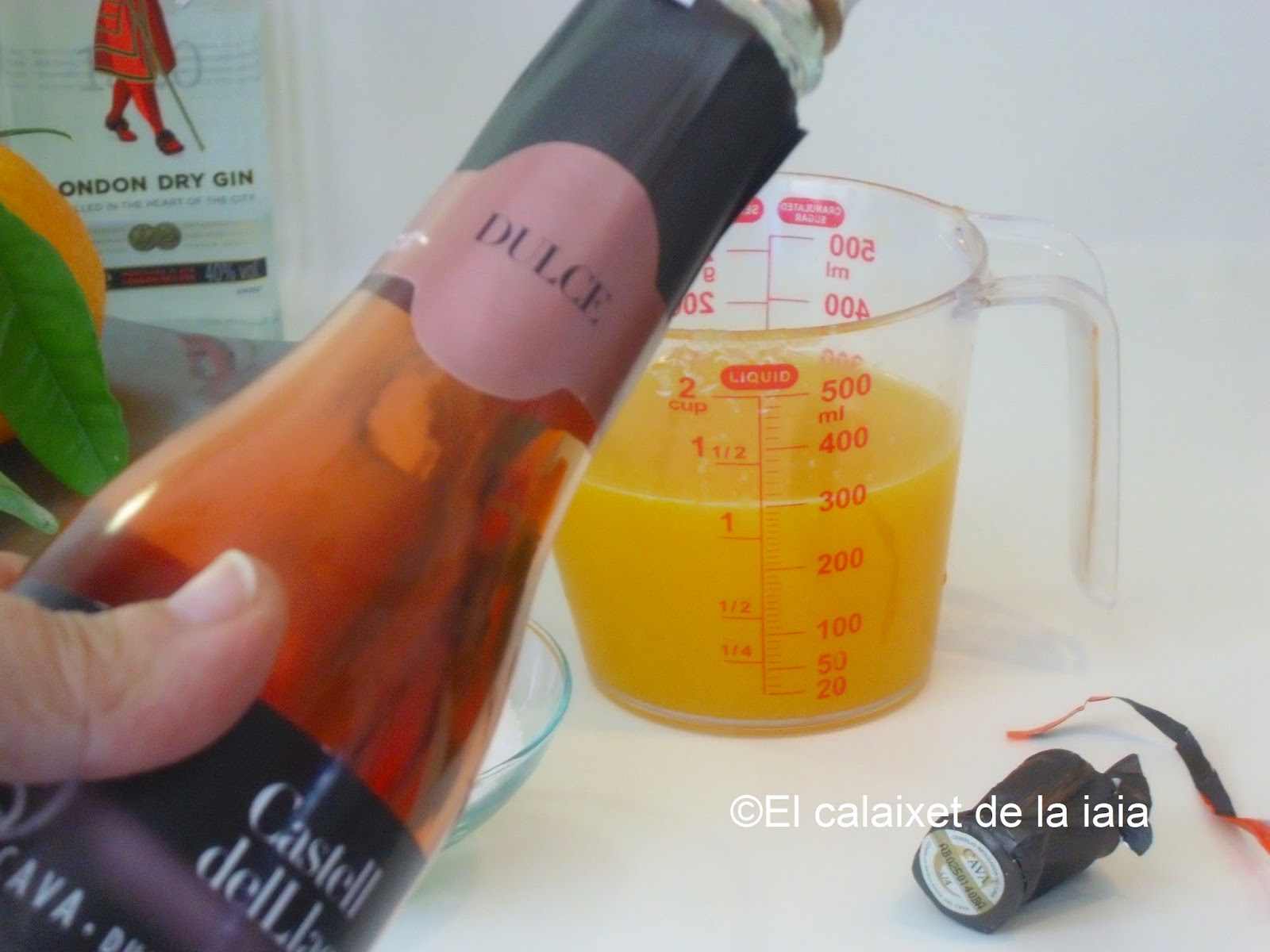 mirad qué color ha dejado en el cóctel, fuerte y muy anaranjado, si usáis cava normal y naranjas que no sean sanguinas, os quedará mucho más claro
