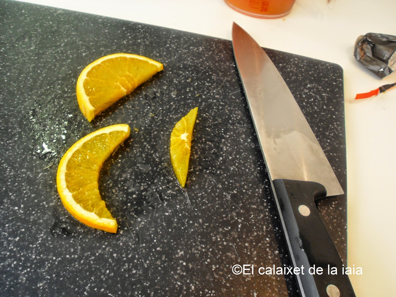 hacemos el zumo de naranja, como las naranjas de hoy, son de la clase sanguina deja un color muy fuerte,