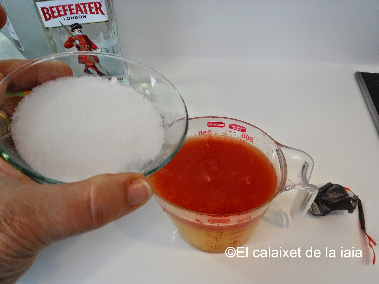 como mi cava es dulce solo añadiré un poco de azúcar si lo usáis brut, son 3 cucharadas