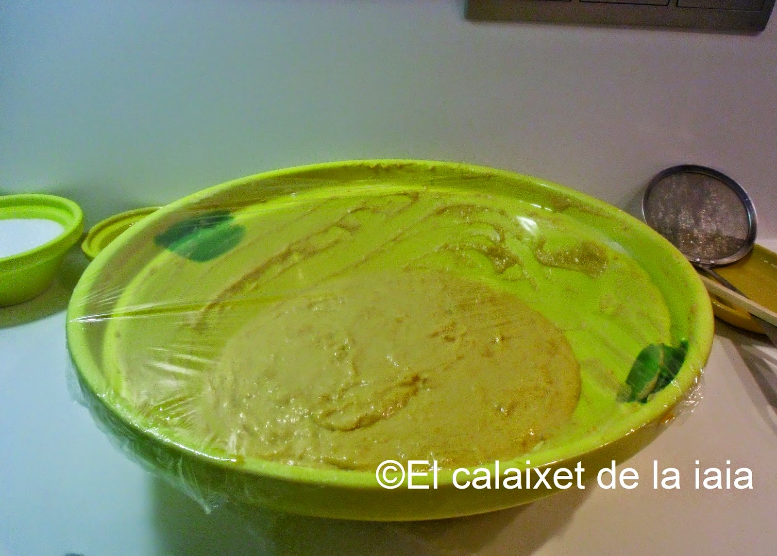 cubrimos el recipiente con papel film (ésto claro está… no lo hacía mi aia jeje), con el fin de que no se nos ensucie el trapo o toalla