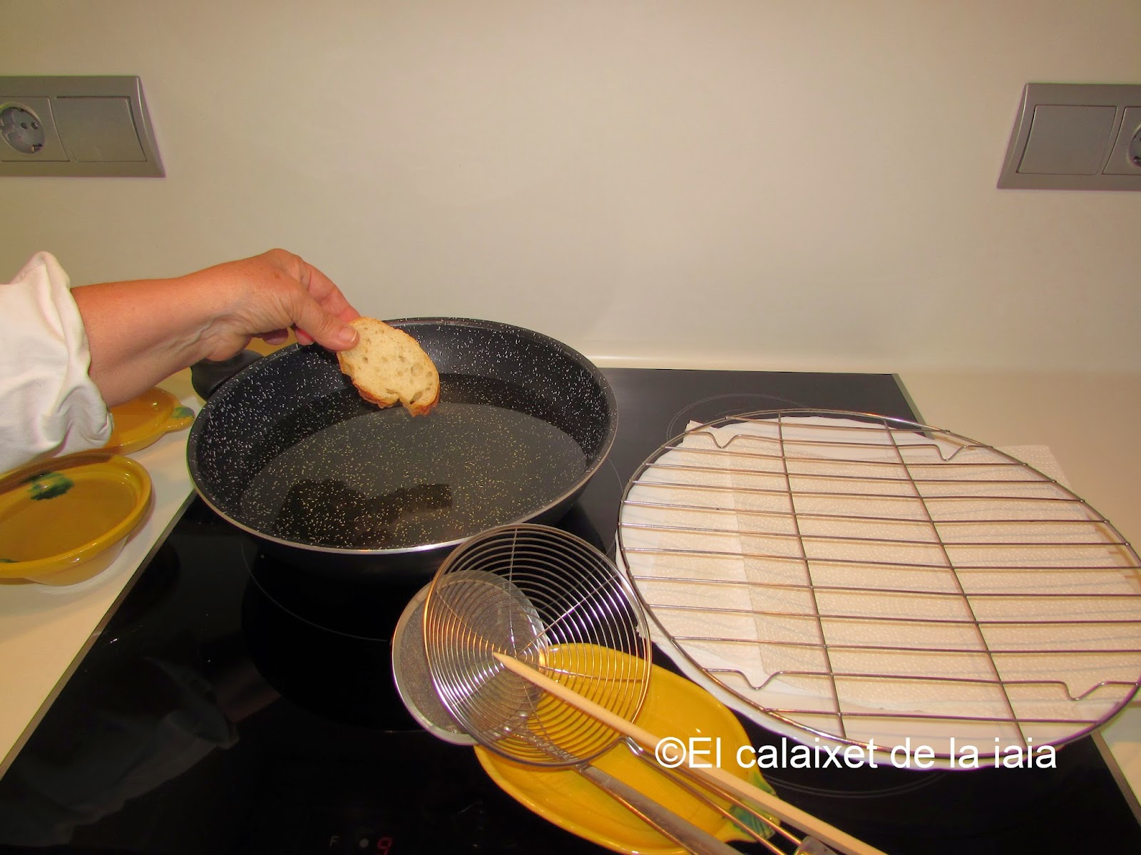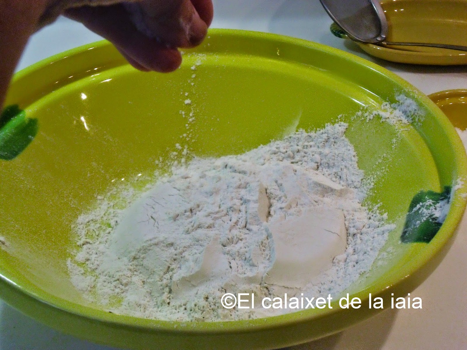 en un recipiente ancho, yo uso un llibrell, igual que hacía mi iaia y añadimos una pizca de sal
