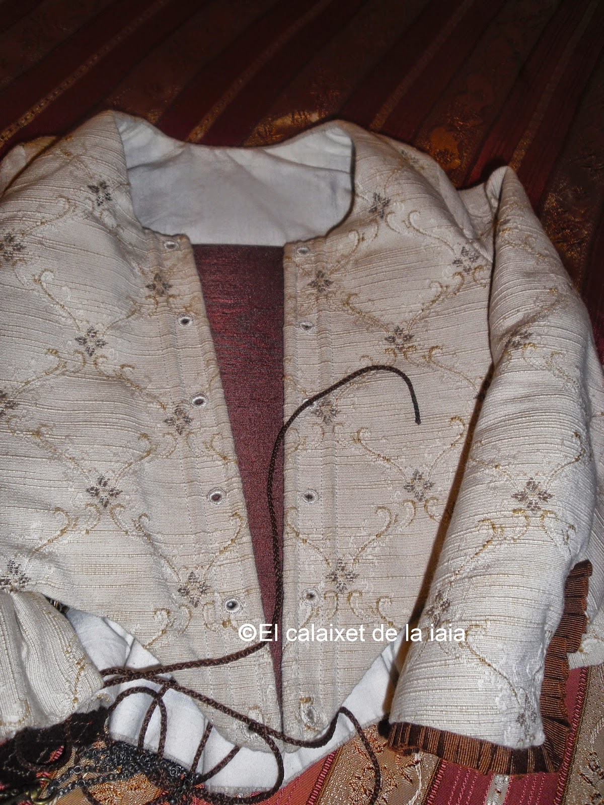Para tener mas surtido, podéis poner en lugar de forro, otra tela que le vaya a la cotilla, jubón o guardapèus (falda), incluso un trozo de la misma tela del jubón o cotilla o guardapèus