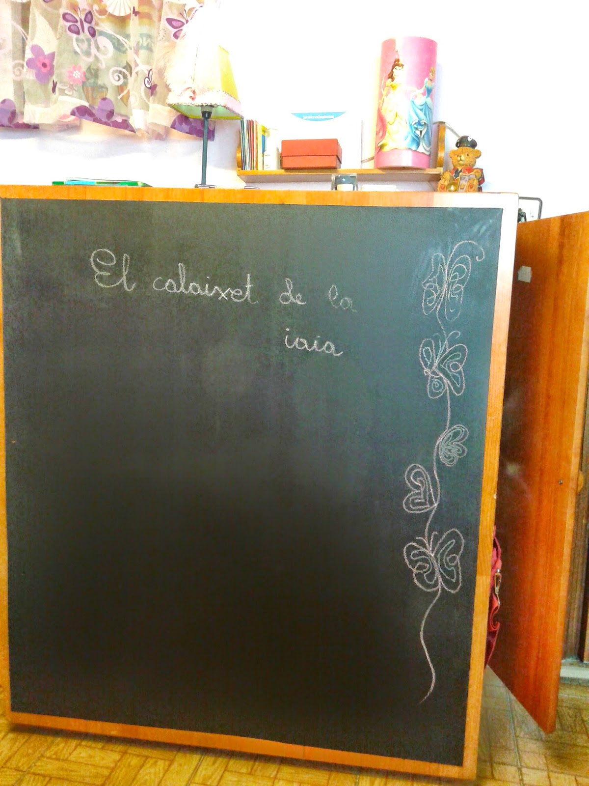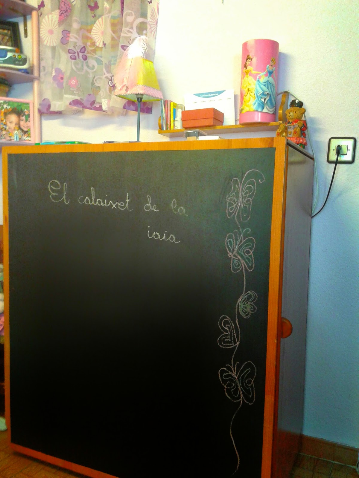 y convertido al mismo tiempo en una pizarra. espero que os haya gustado la idea, a las niñas, les encantó.
