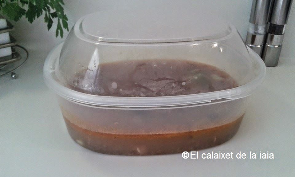 luego al llegar a casa he recordado que no había pasado por la verdulería, pero… en el frigo, había alguna cosilla de la última compra en el mercado, y en el congelador caldo de pescado, que siempre suelo tener, un fumet, un caldo de verduras del hervido, y un caldito de pollo, siempre es bueno tener en el congelador, porque son fondos para muchísimas comidas.