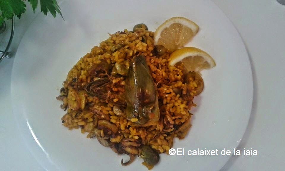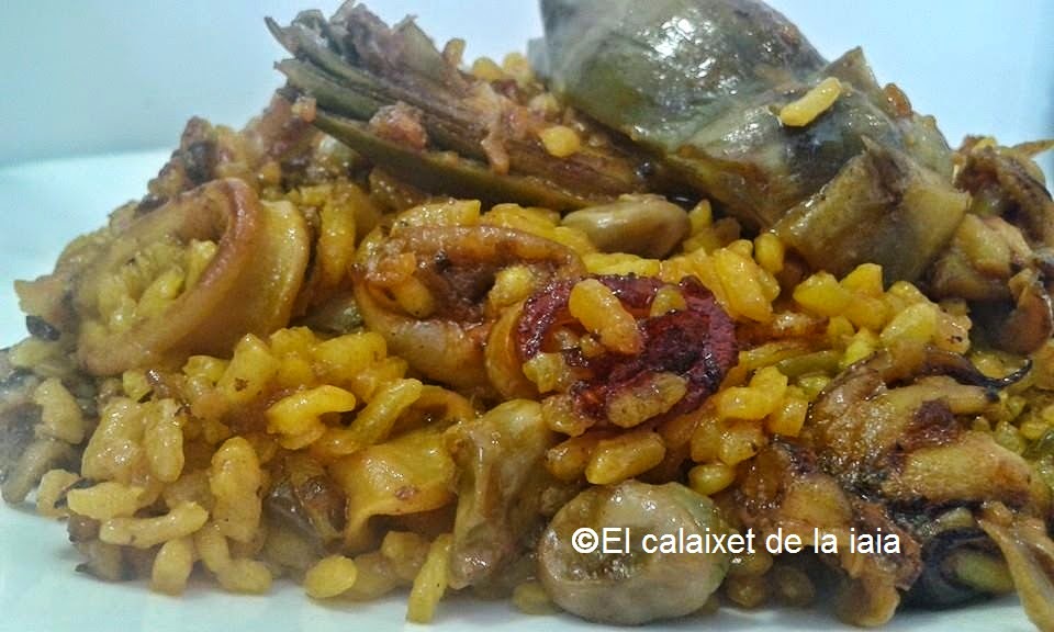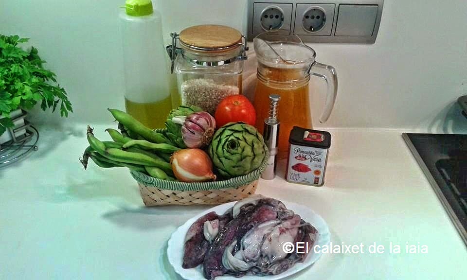 Dicen que la cebolla ablanda el arroz pero como a mi chico le encanta, si vamos con cuidado… yo no he notado jamás que lo ablande, así que una cebollita pequeña, para complacer a mi marido 😉 éso si, JAMÁS en una paella valenciana ¿eh? la paella valenciana ha de llevar lo que toca y punto.