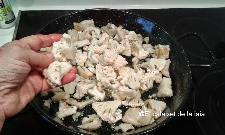 tapando la paella para que la col se haga poco a poco sin tostarse