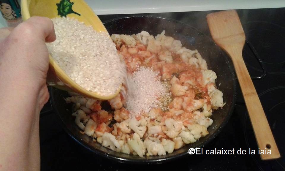 en cuanto esté listo ponemos el arroz para darles unas vueltas y que absorba todo el sabor