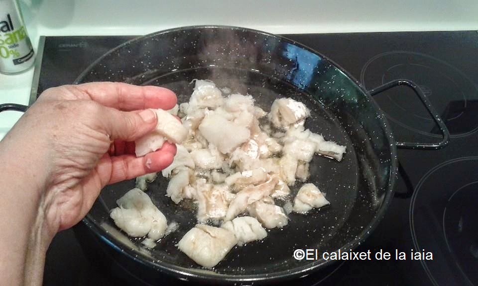 El día antes pondremos el bacalao a remojo en agua fresca, después de haberlo enjuagado bajo el grifo con agua fresca, a conciencia