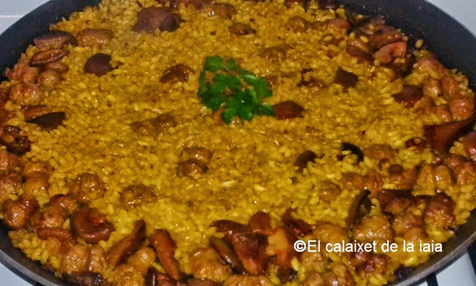 En éste caso no es puchero lo que traigo hoy, sino una paellita, con longaniza y unos rebollones.