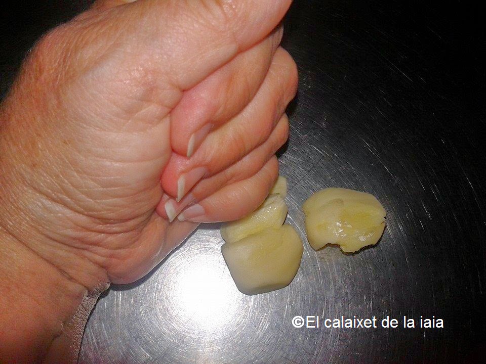 mientras pelamos y golpeamos con el dorso de la mano unos dientes de ajo
