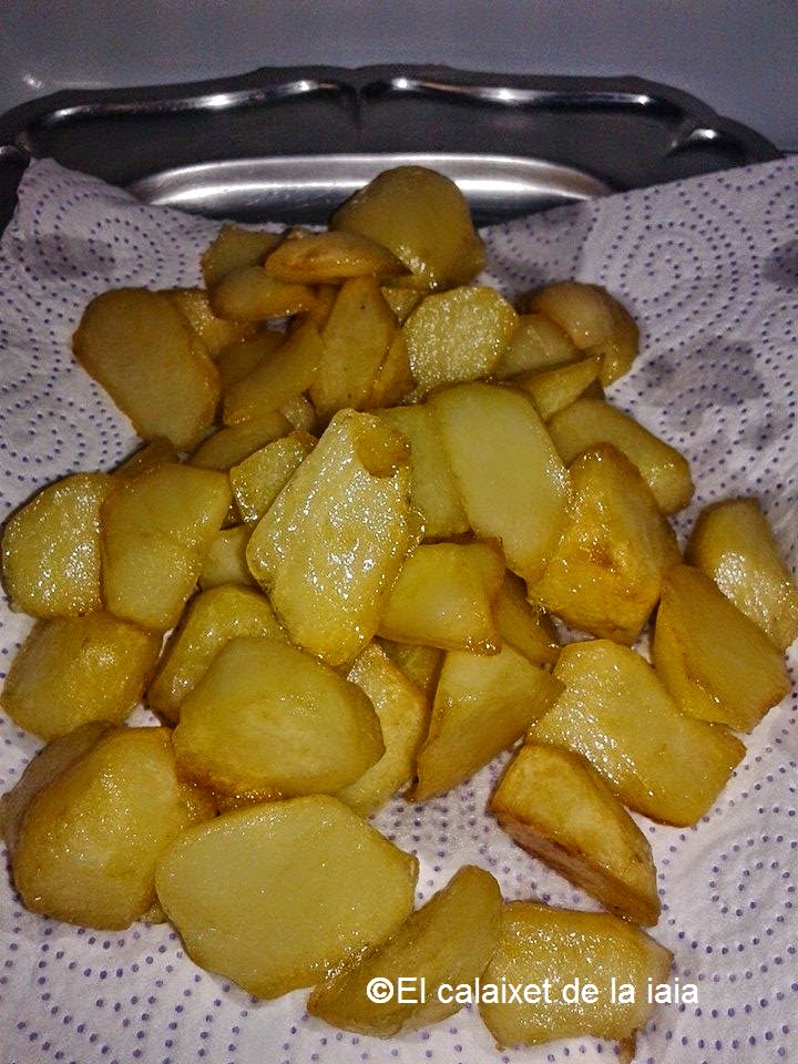 cuando estén las patatas a nuestro gusto las ponemos sobre papel absorbente