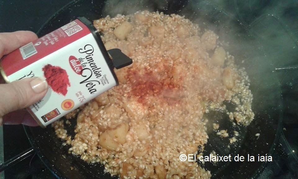 agregamos el pimentón de la Vera y acto seguido para que el pimentón no se nos queme y amargue,