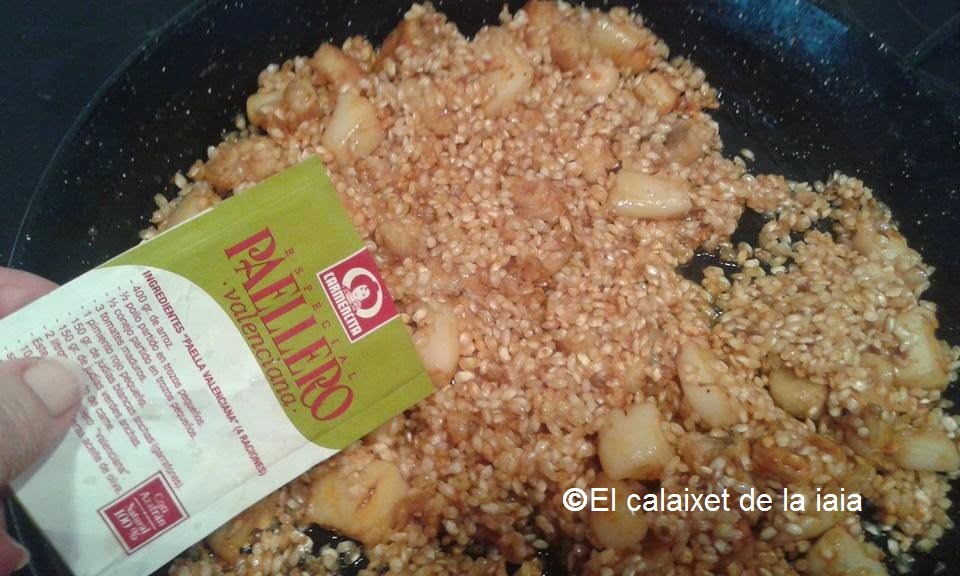 y un sobre de paellero Carmencita, azafrán tostado y molido o preparado para paella con azafrán