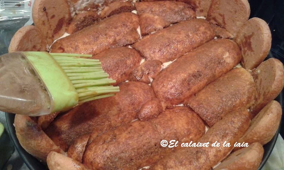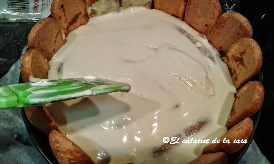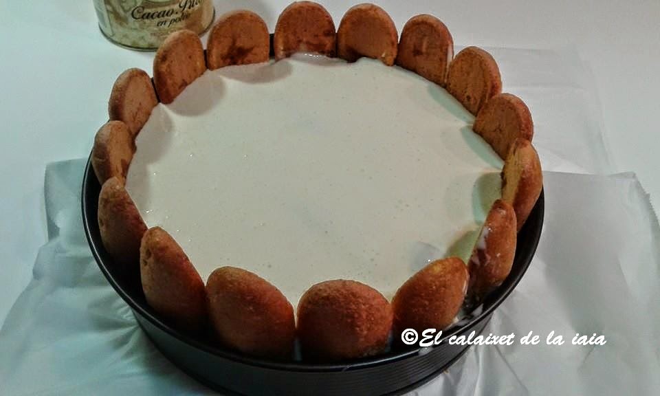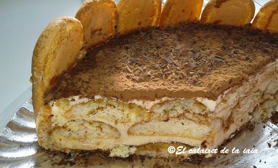Leyendas y cuentos apartes, lo cierto es que me encanta el tiramisú, es una de nuestras tartas preferidas, tanto para mi maridín, como mía, a la par con la del tiramisú de naranja, y cuando Lola y Javier nos invitaron a comer, pensé en hacer uno, pero para que aguantase mejor, ésta vez lo hice en forma de tarta de Charlota semi fría. He probado muchas variantes de tiramisú, hechas por mi, y en restaurantes distintos … pero no encuentro ninguna receta que me guste tanto, tanto, como ésta que hago desde que conseguí la descripción de unos vecinos italianos que tuve un año en la caseta de La Patacona, que era de su madre y que hago igual, pero cambiando el Amaretto por un chupito de whisky, o de ron, y lo mismo opinan quienes prueban este tiramisú en charlota y semifrío, o el que hago así https://elcalaixetdelaiaia.es/?p=1099
