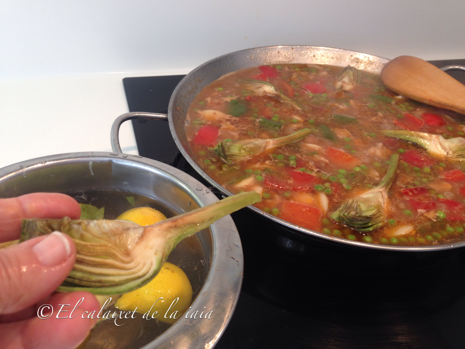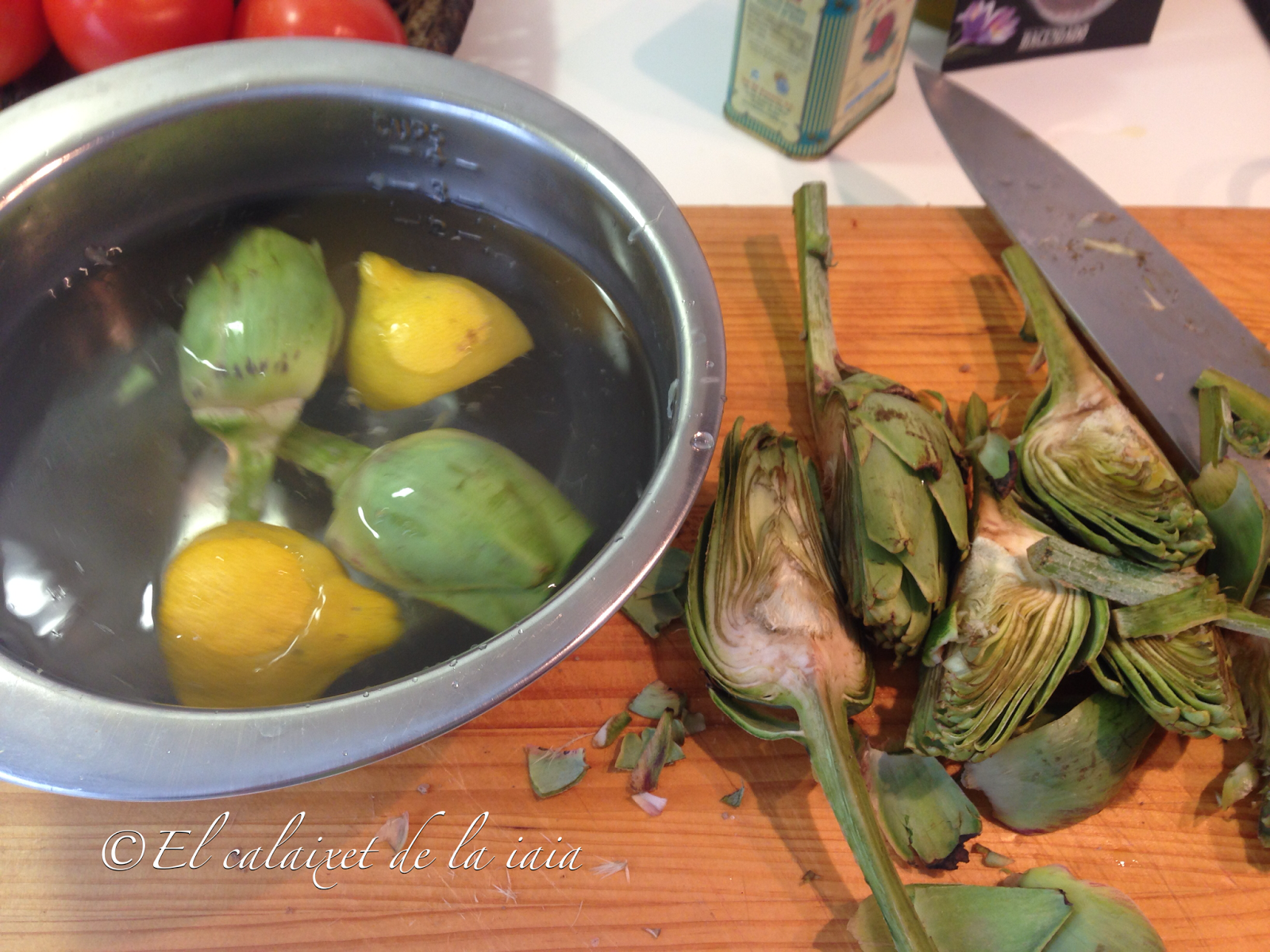 A llegado el momento de poner las alcachofas esta se hacen muy rápidamente casi al mismo tiempo que el arroz por tanto no hace falta ponerlo antes
