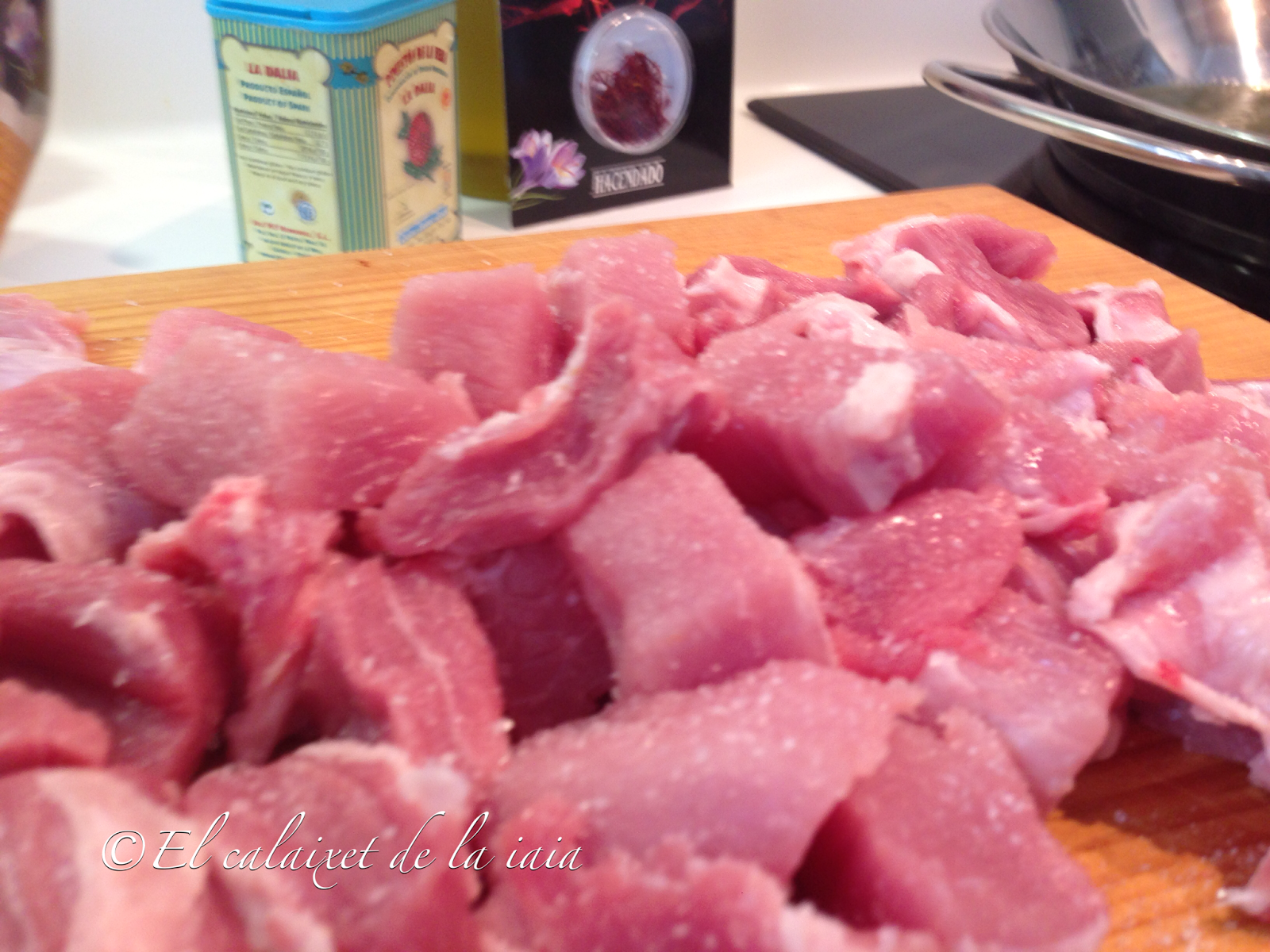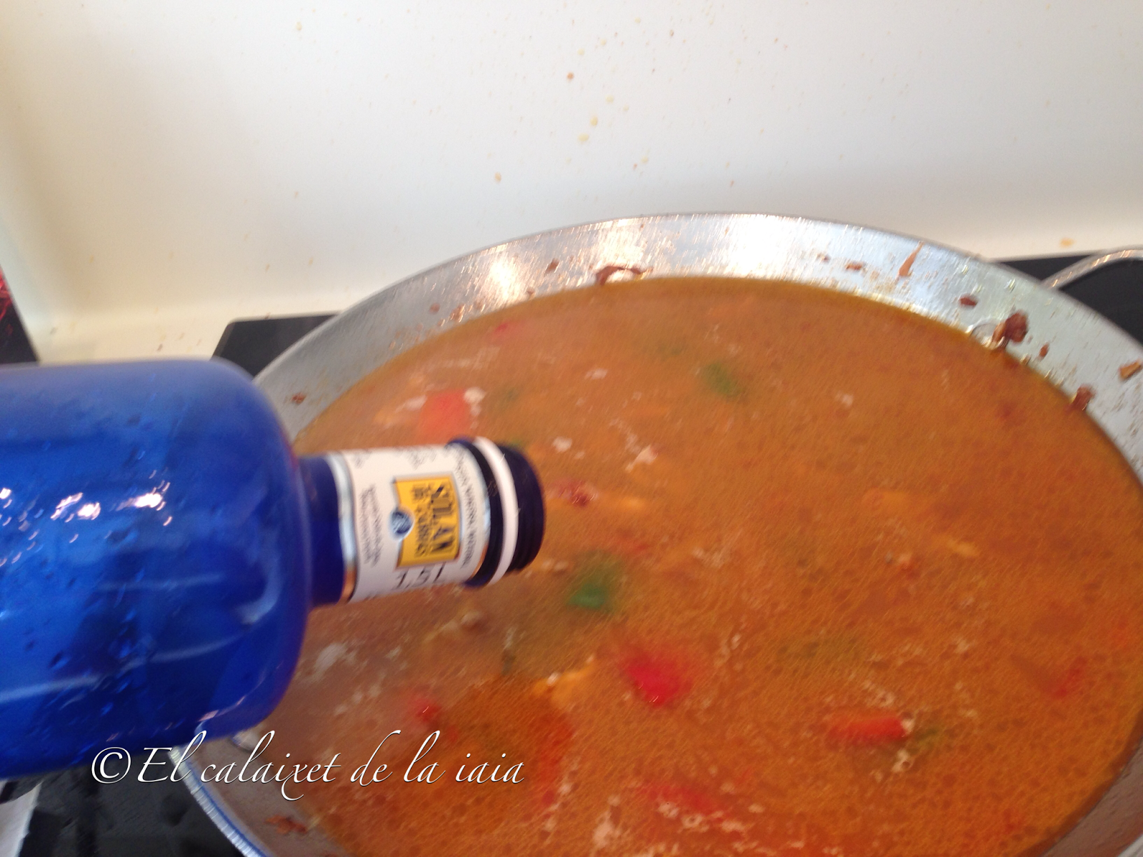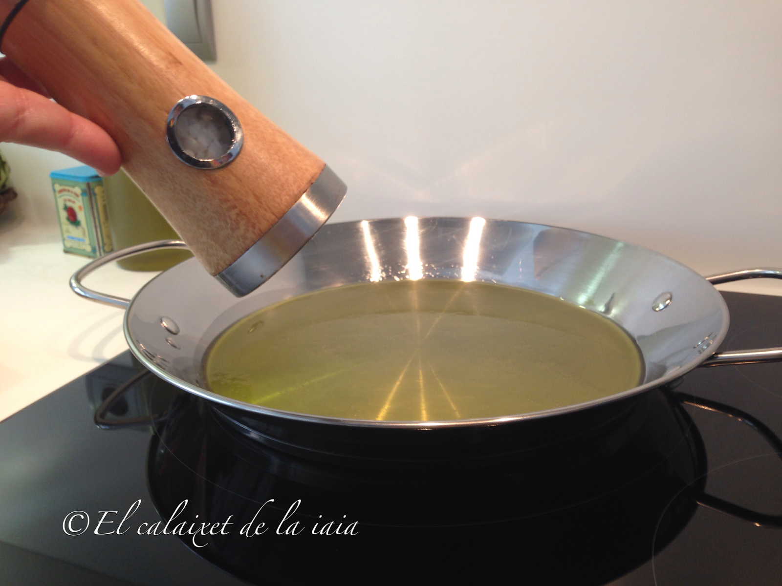 ya que también echaremos sal sobre el aceite que se está calentando en la paella, para evitar que ésta se queme y procurar que salpique lo menos posible