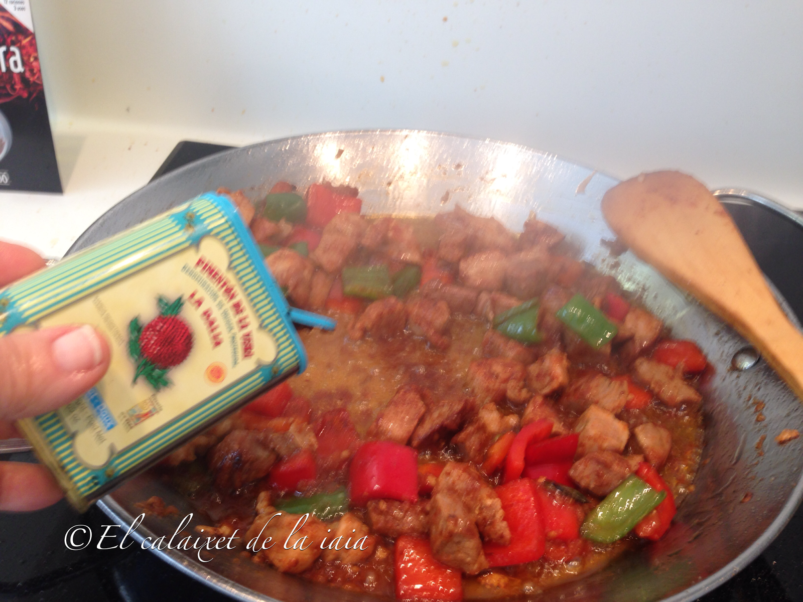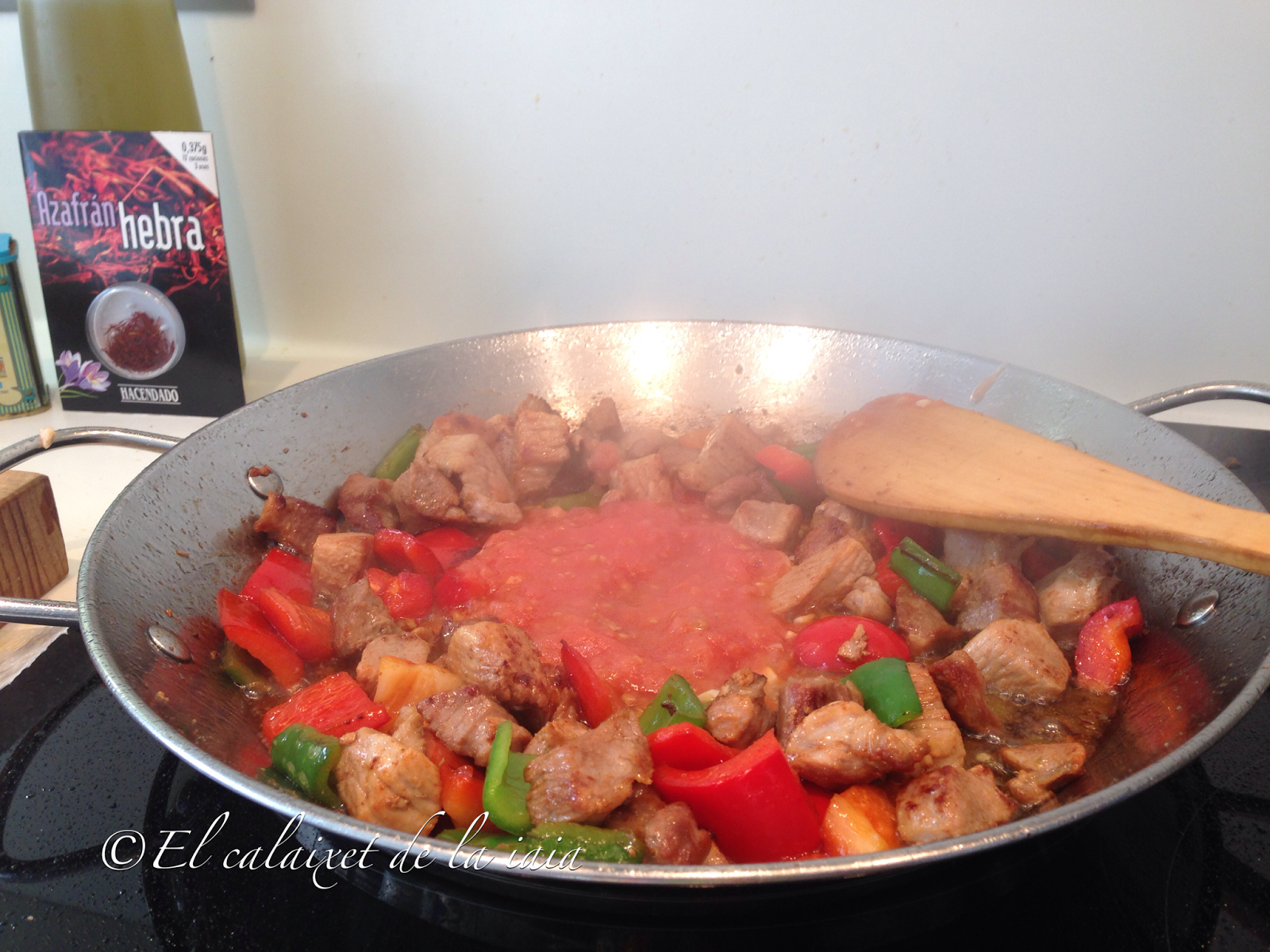 Hasta que veamos que el agua del tomate ha desaparecido, entonces añadiremos un poco de pimentón de la Vera
