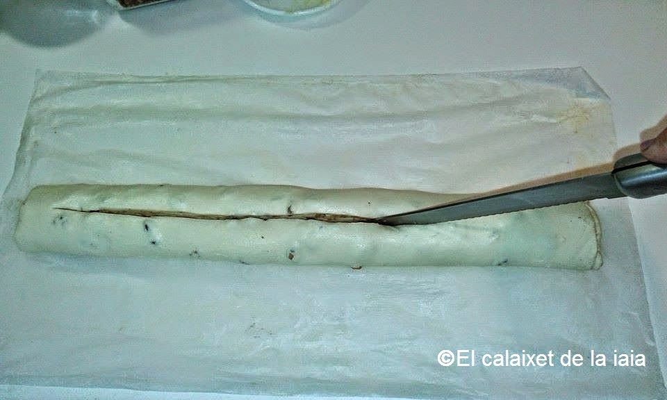 Con ayuda del papel sulfurizado enrollamos sobre si misma