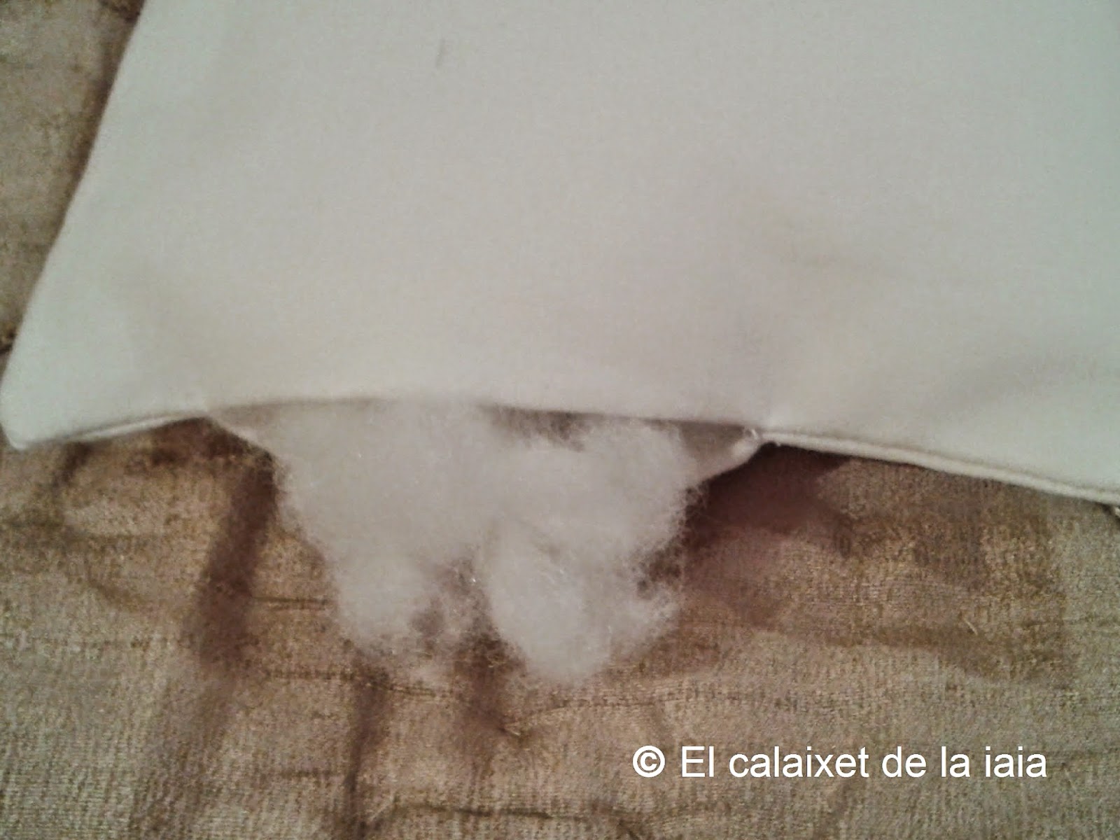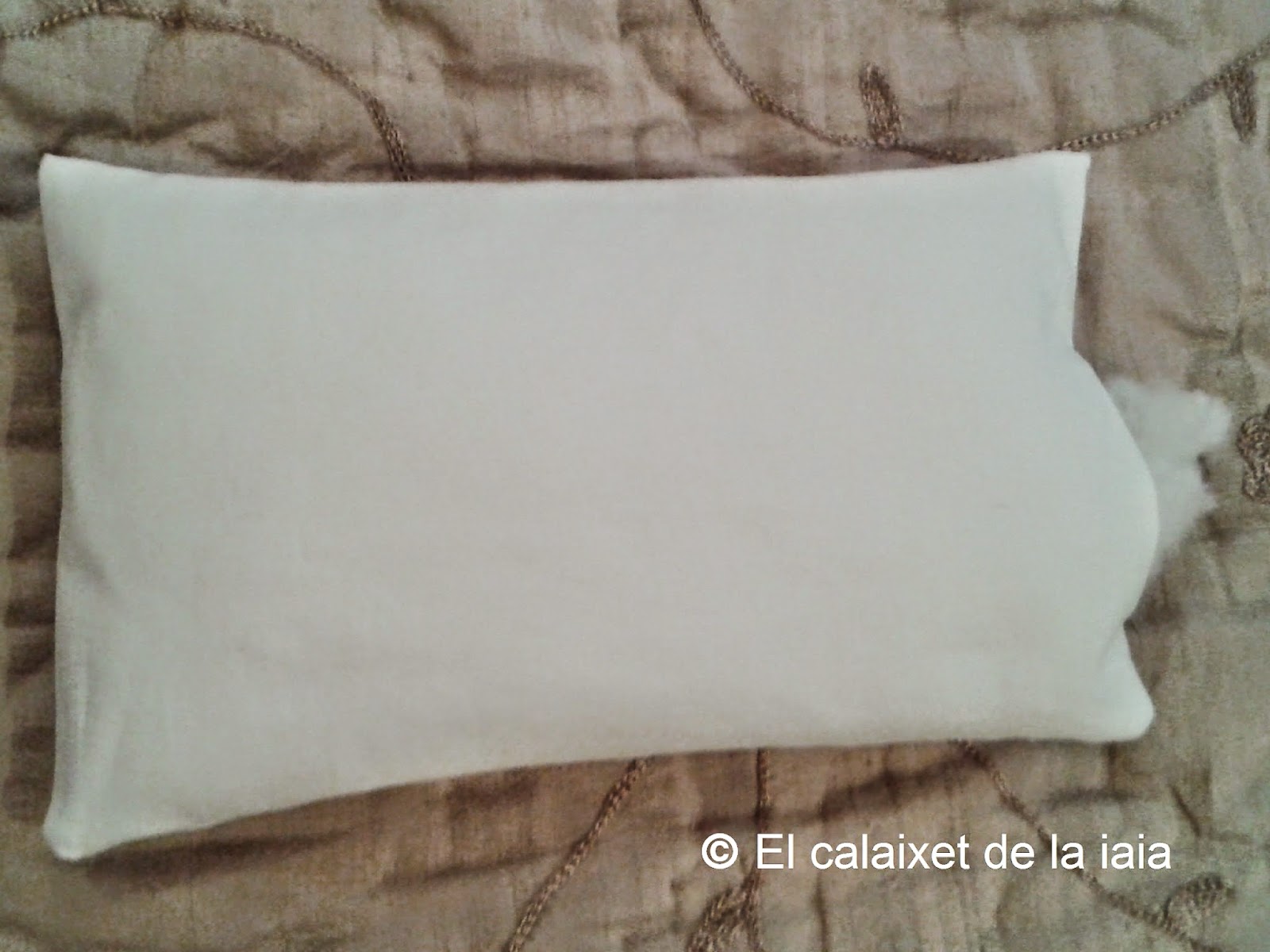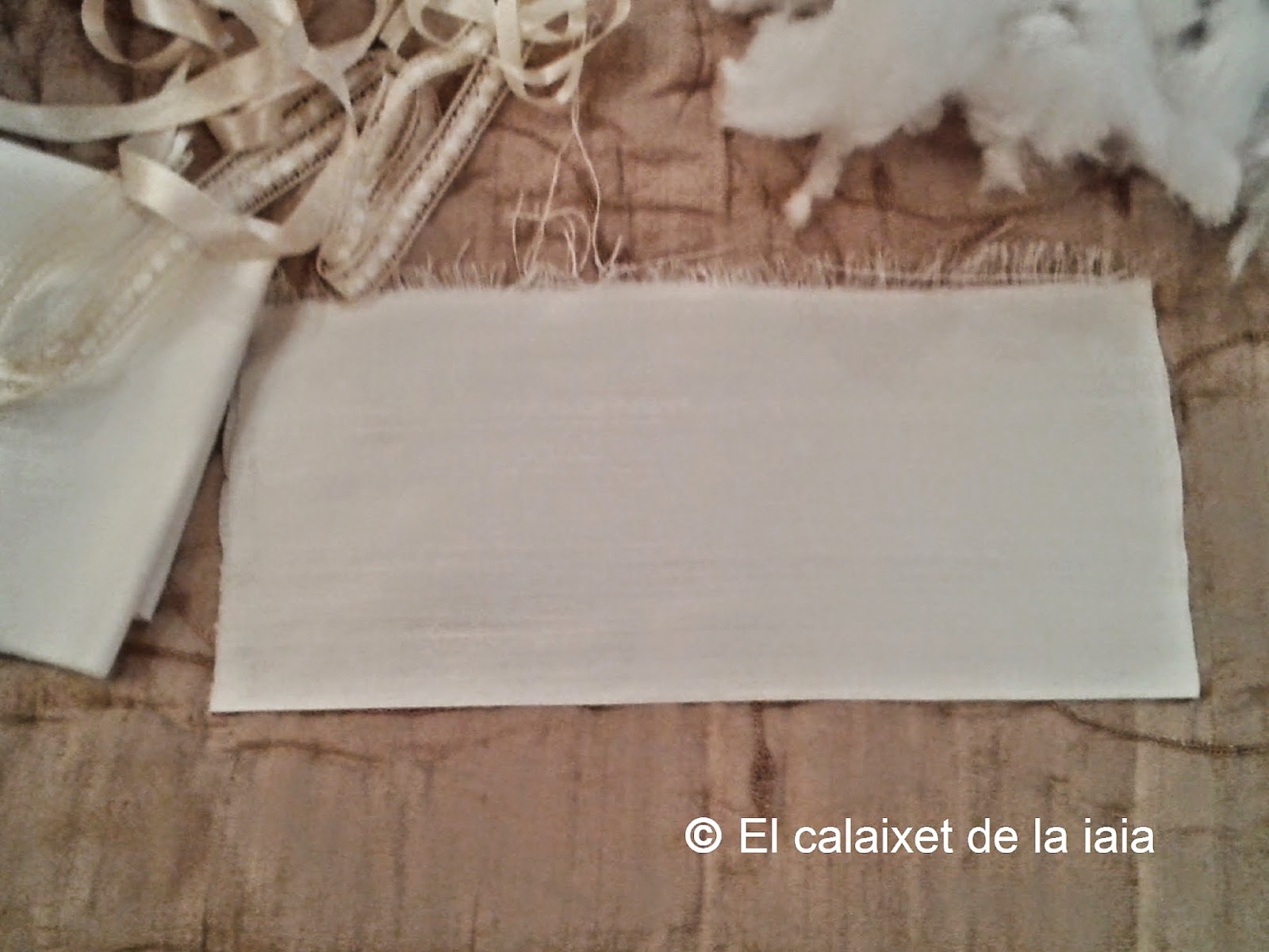 Para el cojín de 25cm. por 12cm. corté un trozo de 26cm por 13cm. y cosí a mano el pasacintas en la parte superior