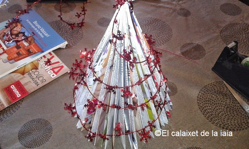 Con éste arbolito que os traigo hoy podemos decorar con tan solo el gasto de una guirnalda y una estrellita,(si queremos decorarlo). Lo podemos hacer con l@s niñ@s teniéndoles entretenidos un ratito ahora que vienen vacaciones escolares, o podemos hacerlo nosotros mismos con la ventaja aparte de la económica, de que una vez pasadas fiestas, no necesitamos guardarlo y puede ir a parar al contenedor azul de papel y cartón.