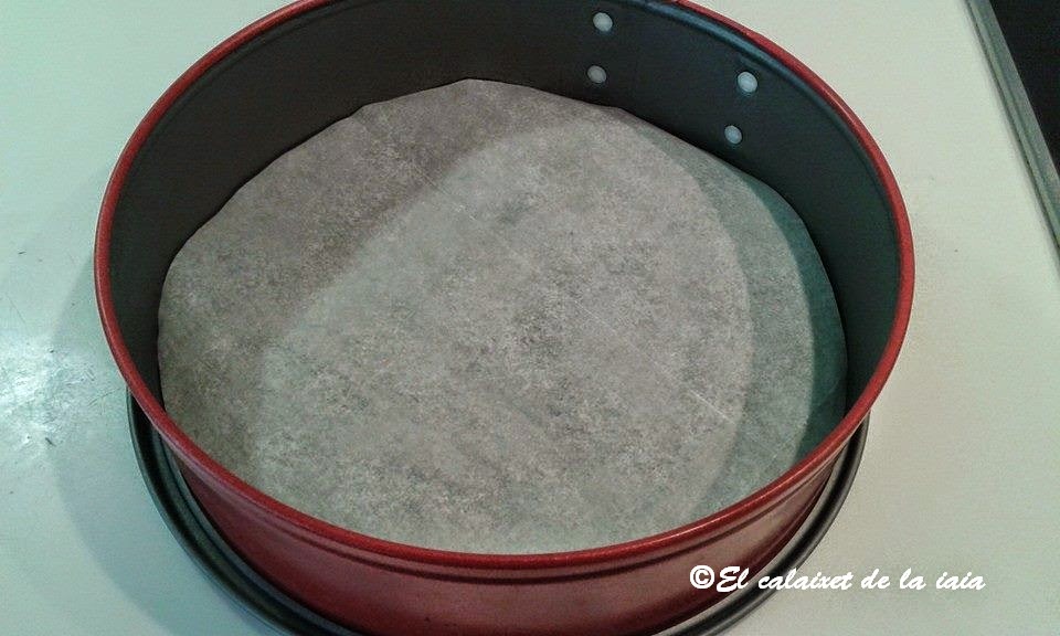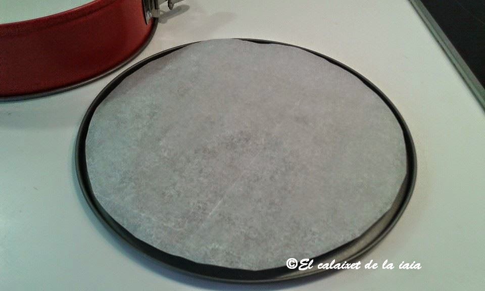 coloco sobre la base y cierro el aro hermético, así es muy sencillo traspasarlo ya que no se pega absolutamente nada, pero si lo vais a servir en la base, saltaros éste paso, pues con la mantequilla será suficiente.
