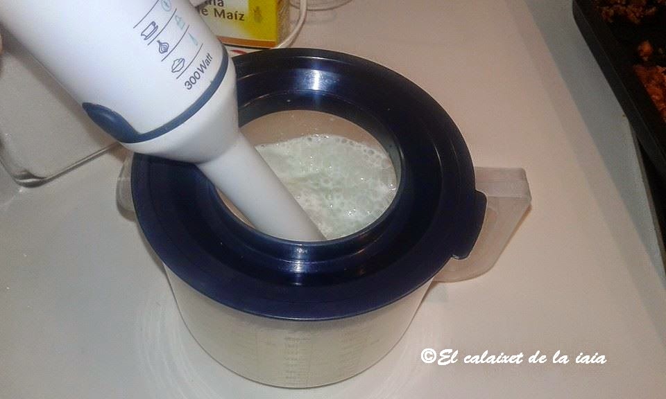 En un bol o vaso de batidora, montamos los 400 ml de nata, que son dos briks de 200 y reservamos
