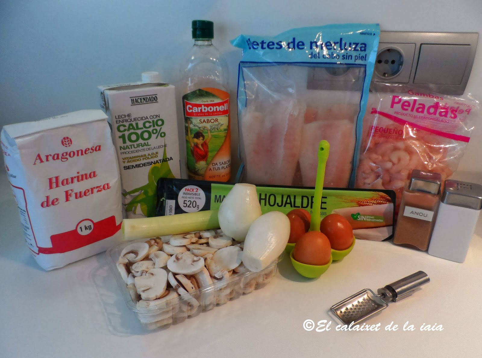 En la pescadería del mercado, repartían un día unos folletos con recetas para cocinar el pescado en celebraciones, me gustó una de las recetas, e hice mi adaptación particular para que saliera mas económica,cambiando la merluza fresca por congelada y los langostinos por gambita pelada, la nata por bechamel casera…y un par de cositas mas. Para darle un aire mas Navideño le he dado forma de abeto (en lugar de forma empanada como decía la receta original), como hice el año pasado con las pizzas de Nochebuena para los nanos .He praparado tan pronto éste plato para daros ideas y porque por primera vez voy a participar en un reto de cocina, hasta ahora mi blog era para un reducido numero de amig@s y familiares, espero estar a la altura, aunque tod@s sabéis que mi cocina es muy sencilla y mi blog, de andar por casa, en fin ¡a ver que sale!