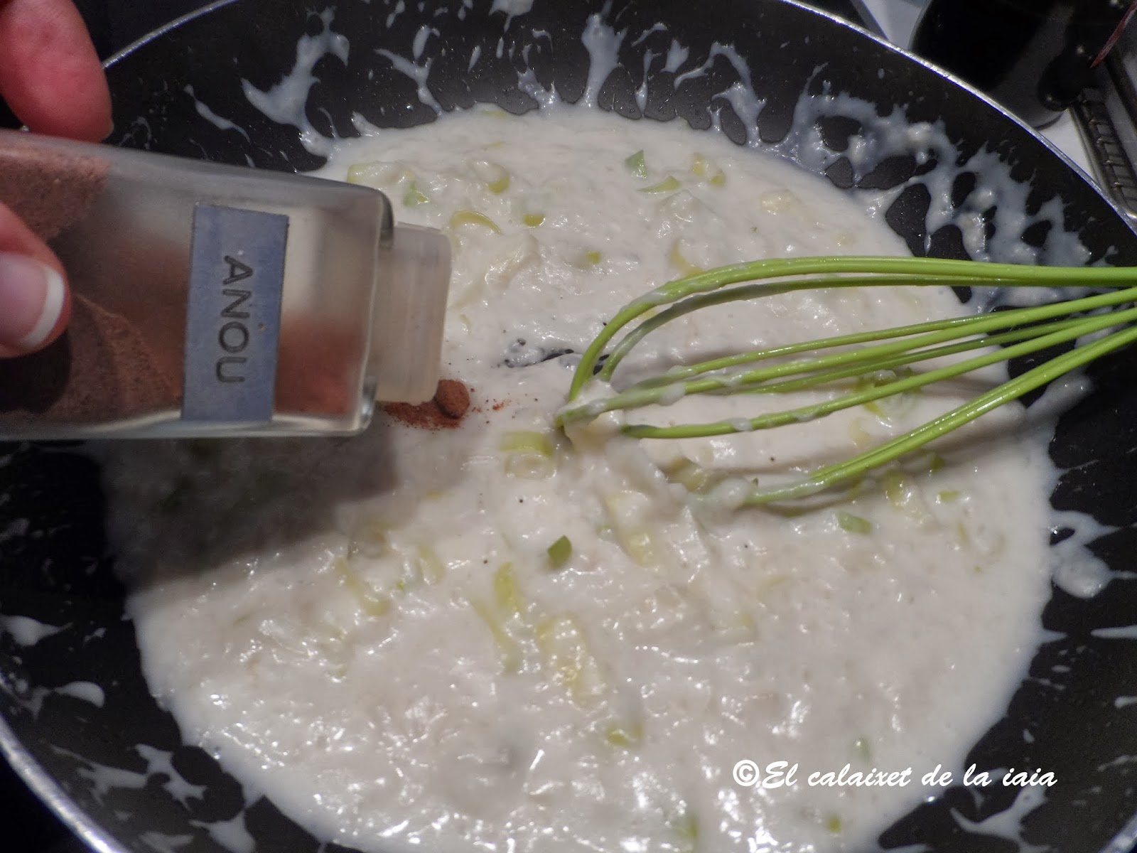 incorporamos leche y movemos para evitar grumos,y seguimos añadiendo leche hasta conseguir una bechamel espesita,