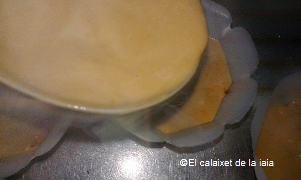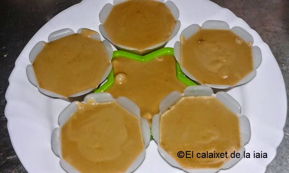 ponemos en los moldes el caramelo líquido https://elcalaixetdelaiaia.es/caramelo-casero-para-envasar