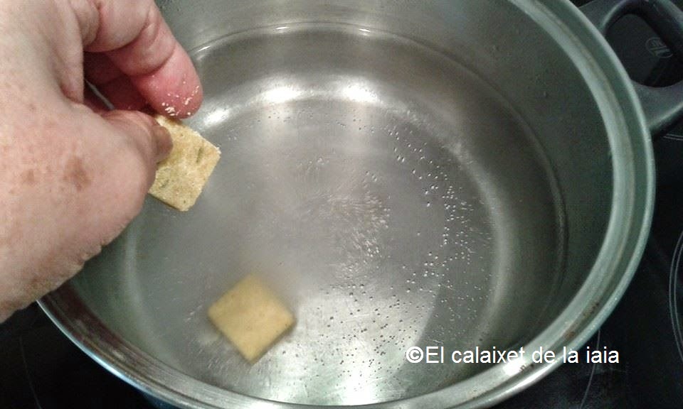 Ponemos agua a hervir, con dos pastillas de Avecrem. Siempre añado a la pasta al hervir dos pastillas de Avecrém de pollo, pero si no os gusta o no queréis, podéis poner solo sal