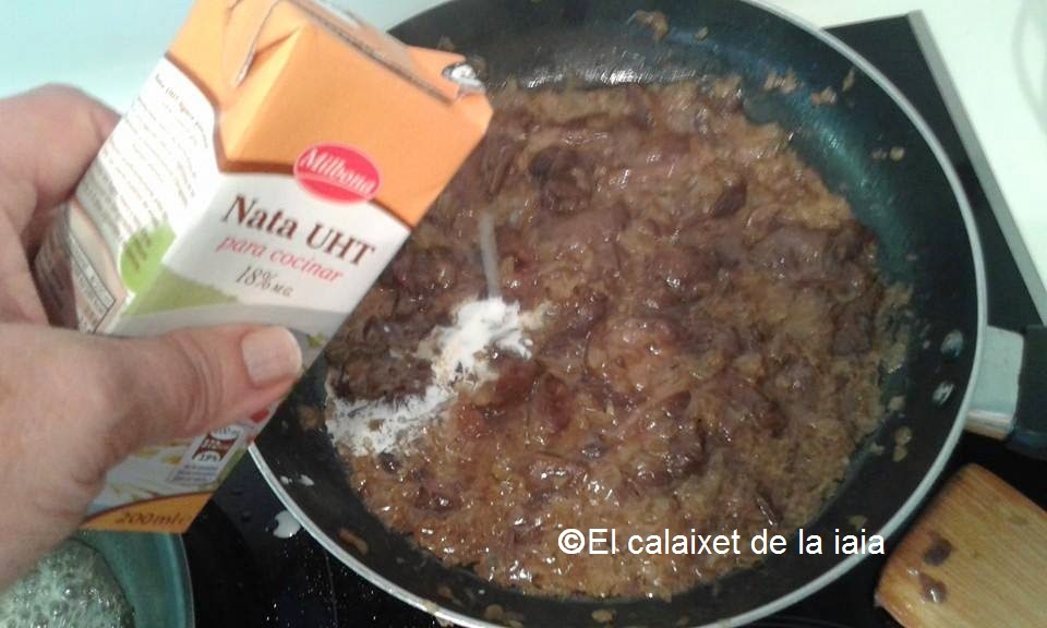- una vez esté pochada la cebolla, incorporamos la lepiota y dejamos cocinar a fuego lento