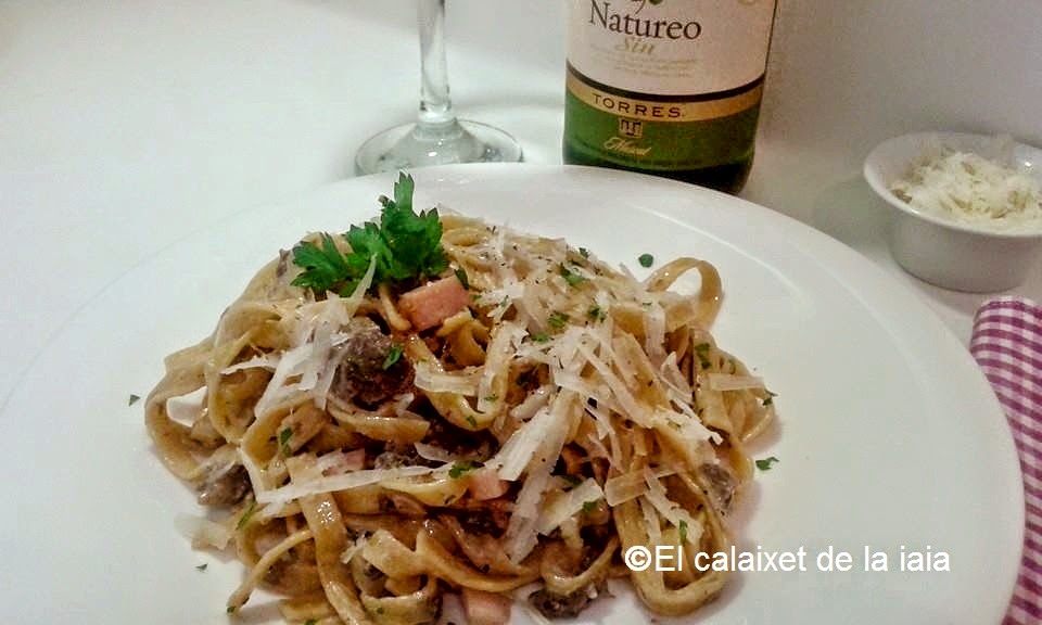 - Pensaba preparar unos Fetuccini con salsa Alfredo pero como hemos tenido la suerte de coger en el bosque unos pies azules, dejaré la salsa Alfredo para otro día.
