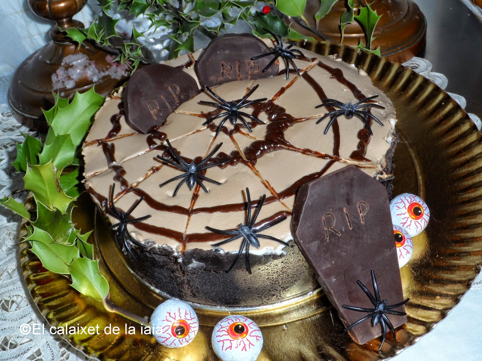 y unas arañas de plástico. La verdad es que nos quedó ¡¡¡GENIAL!!! daba pena comerla. A su iaio le encantó, porque aparte de la estética terrorífica, estaba deliciosa.
