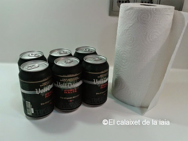 Papel de cocina, servilletas o incluso echamos mano del periódico de ayer y las latas, o botellas del producto que queramos refrescar.