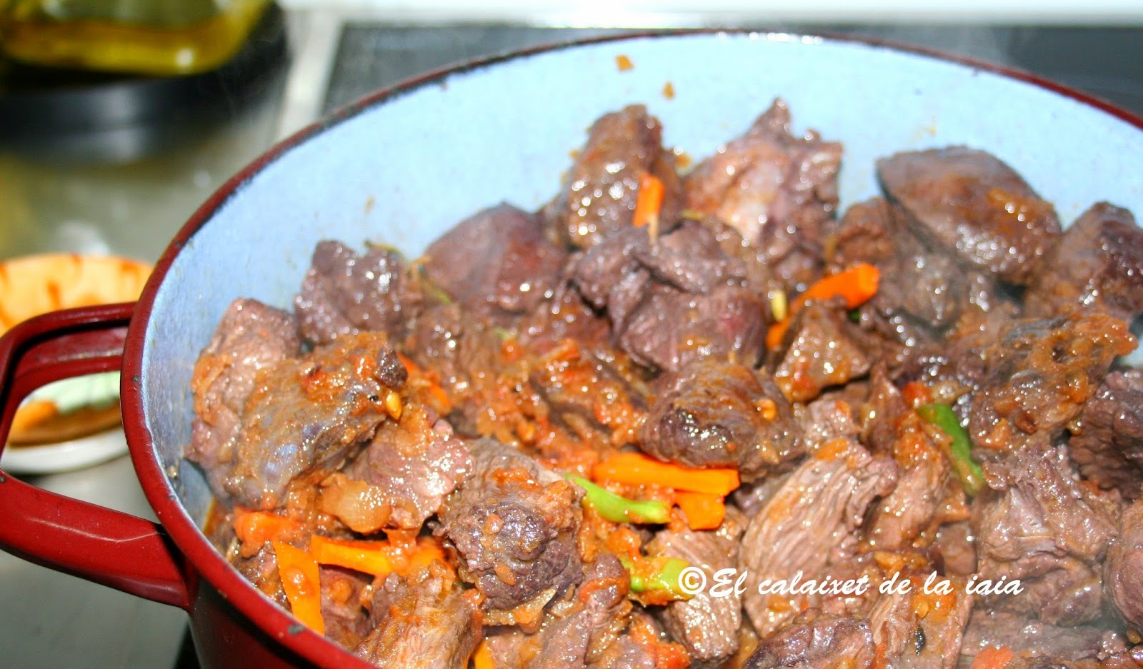 Este guiso queda mejor de un día para otro para que repose la carne y la salsa por lo cual es mejor dejar un poco suave de sal ya que con el reposo el guiso tendrá un poco más de sabor.