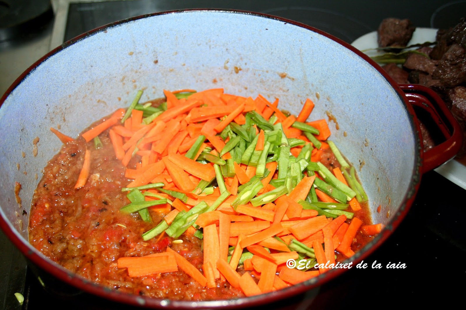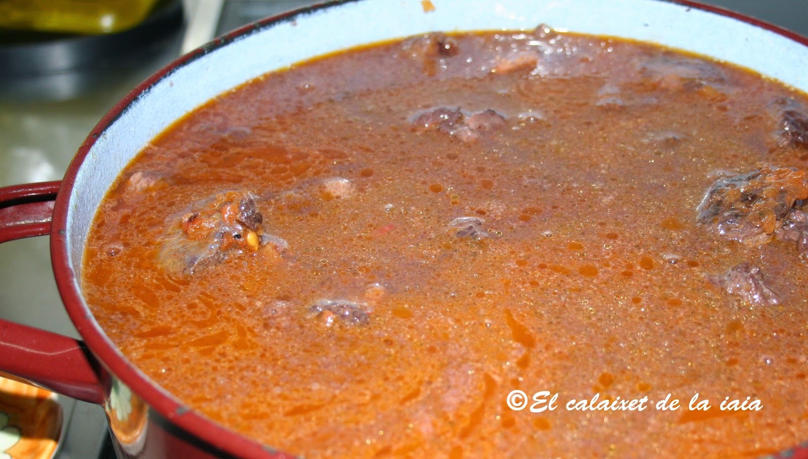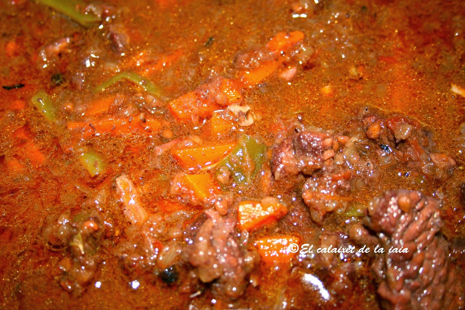 Esperamos que se cocine a fuego lento y a hervor suave durante unas 2 horas dependiendo de la dureza de la carne.