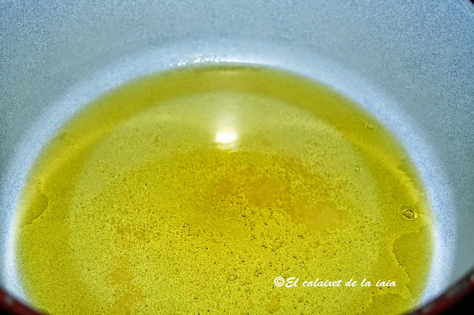 Ponemos aceite de oliva y sal en una cazuela y sofreímos ligeramente hasta que se doren,