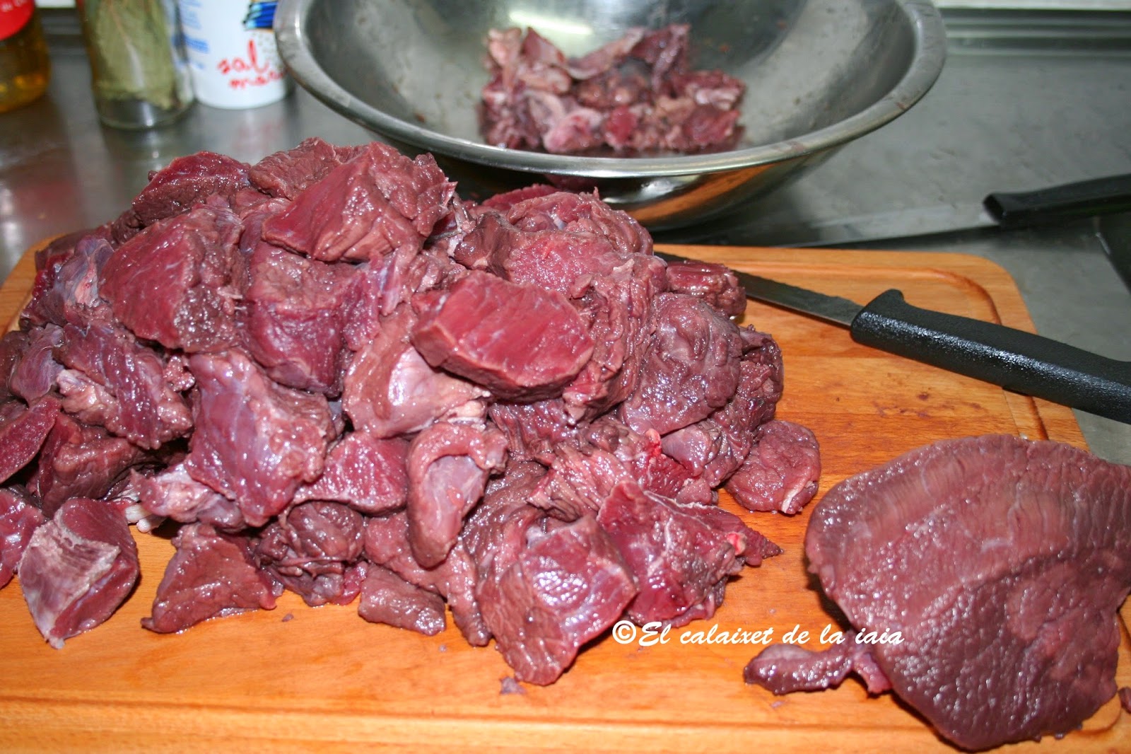 Una vez marinada la carne las 8 horas, colamos el marinado reservando por una parte la carne,también guardamos el vino