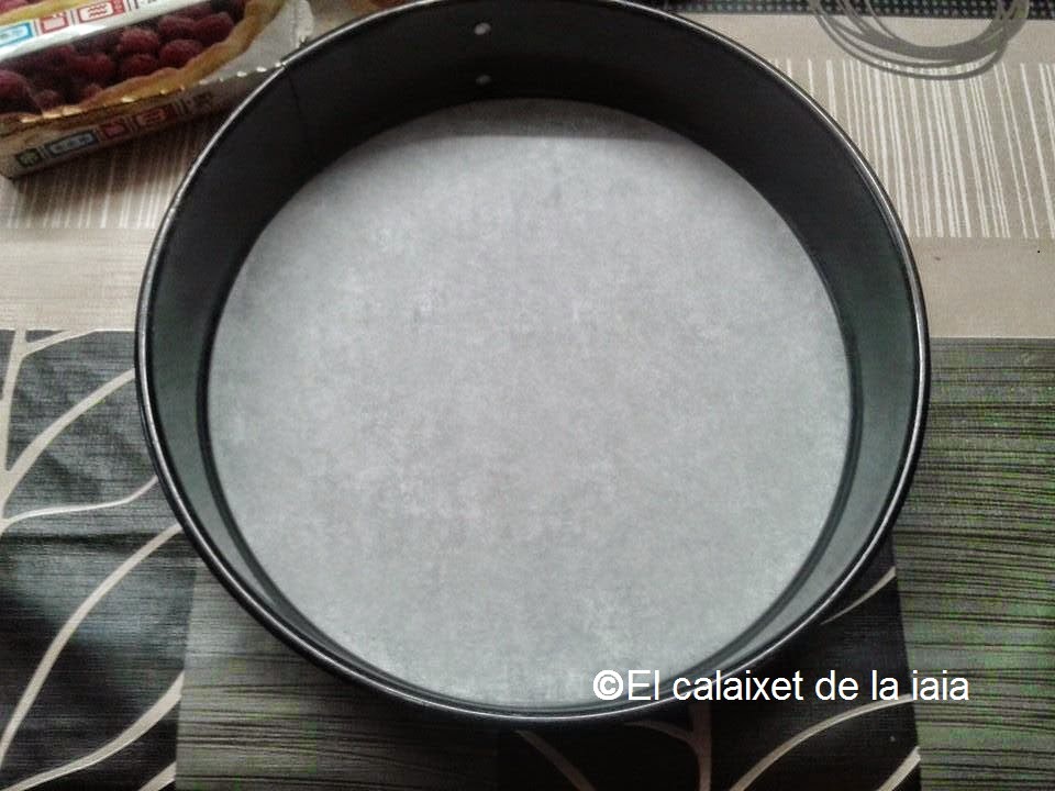 Comenzaremos poniendo papel sulfurizado (de horno) en la base del molde, luego lo cerraremos y cortaremos en papel sobrante.