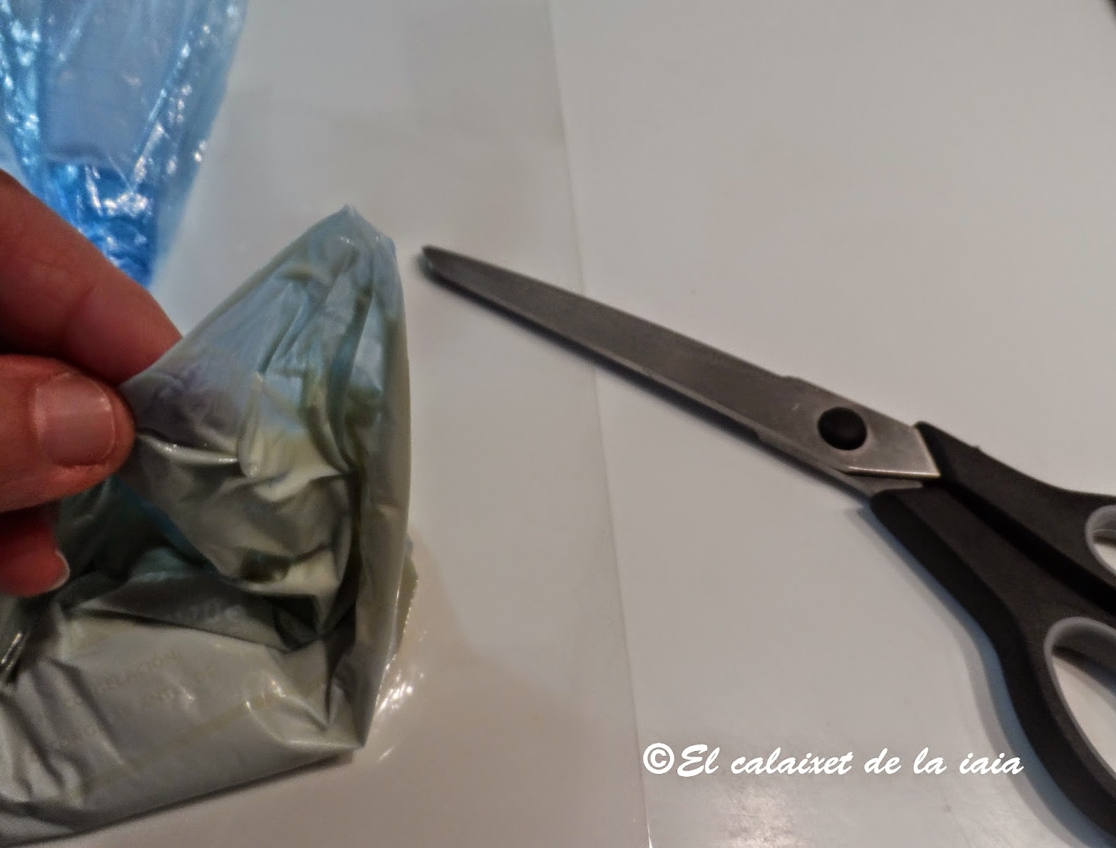cortamos otro trocito de acetato y formamos un enrejado, (para ello hacer el agujero de la bolsita bastante pequeño) y dejamos enfriar