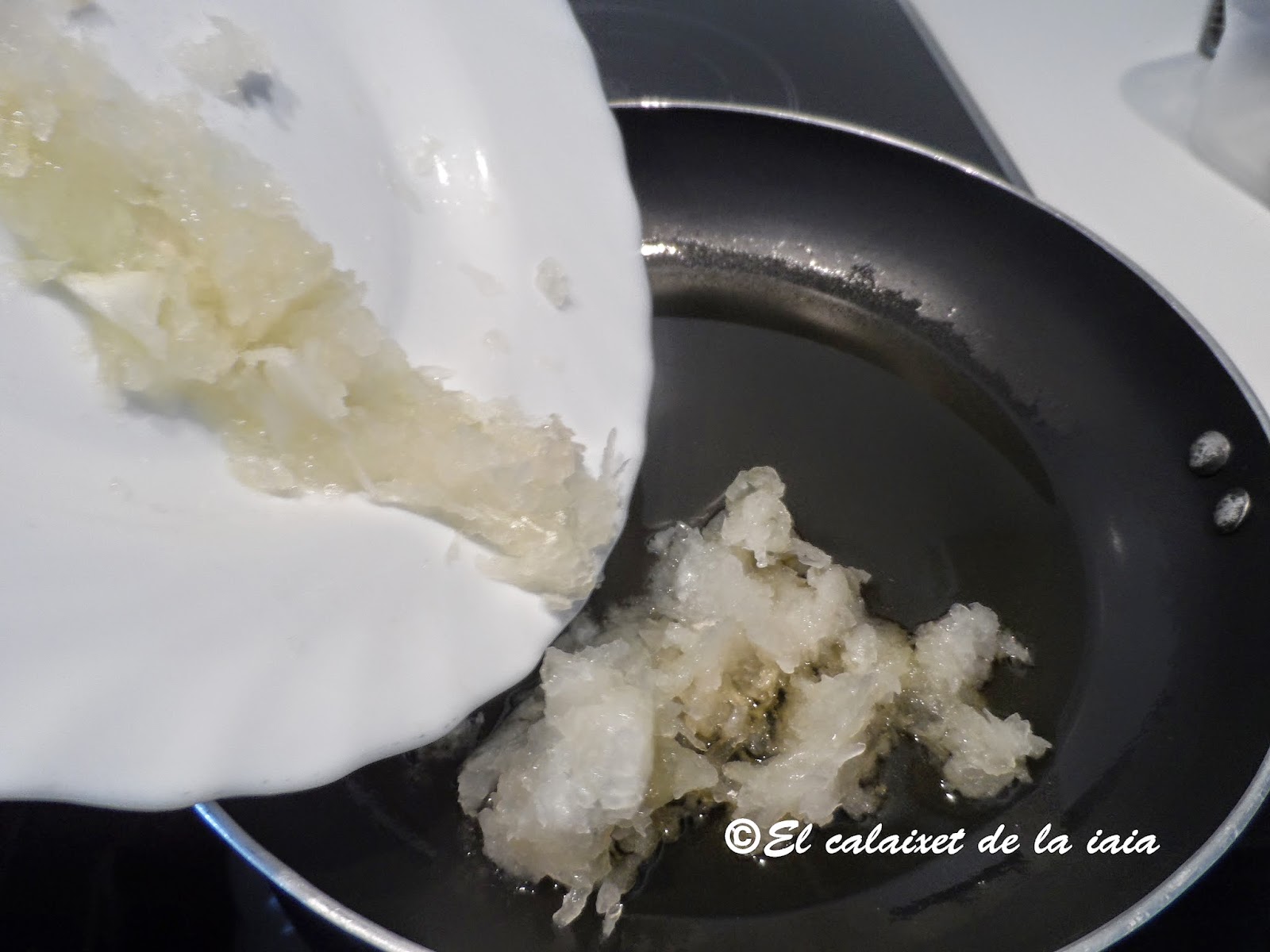 Ponemos una sartén con aceite a calentar, y echamos la cebolla