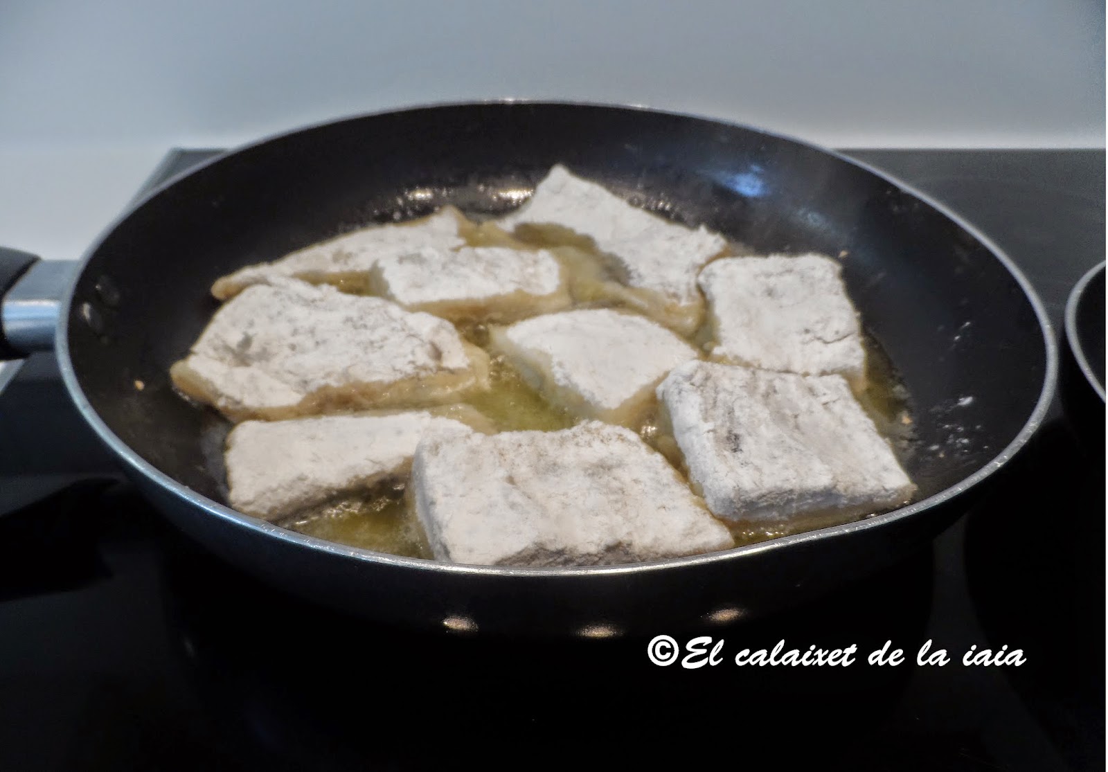 En el mismo aceite ponemos a rebozar el bacalao enharinado
