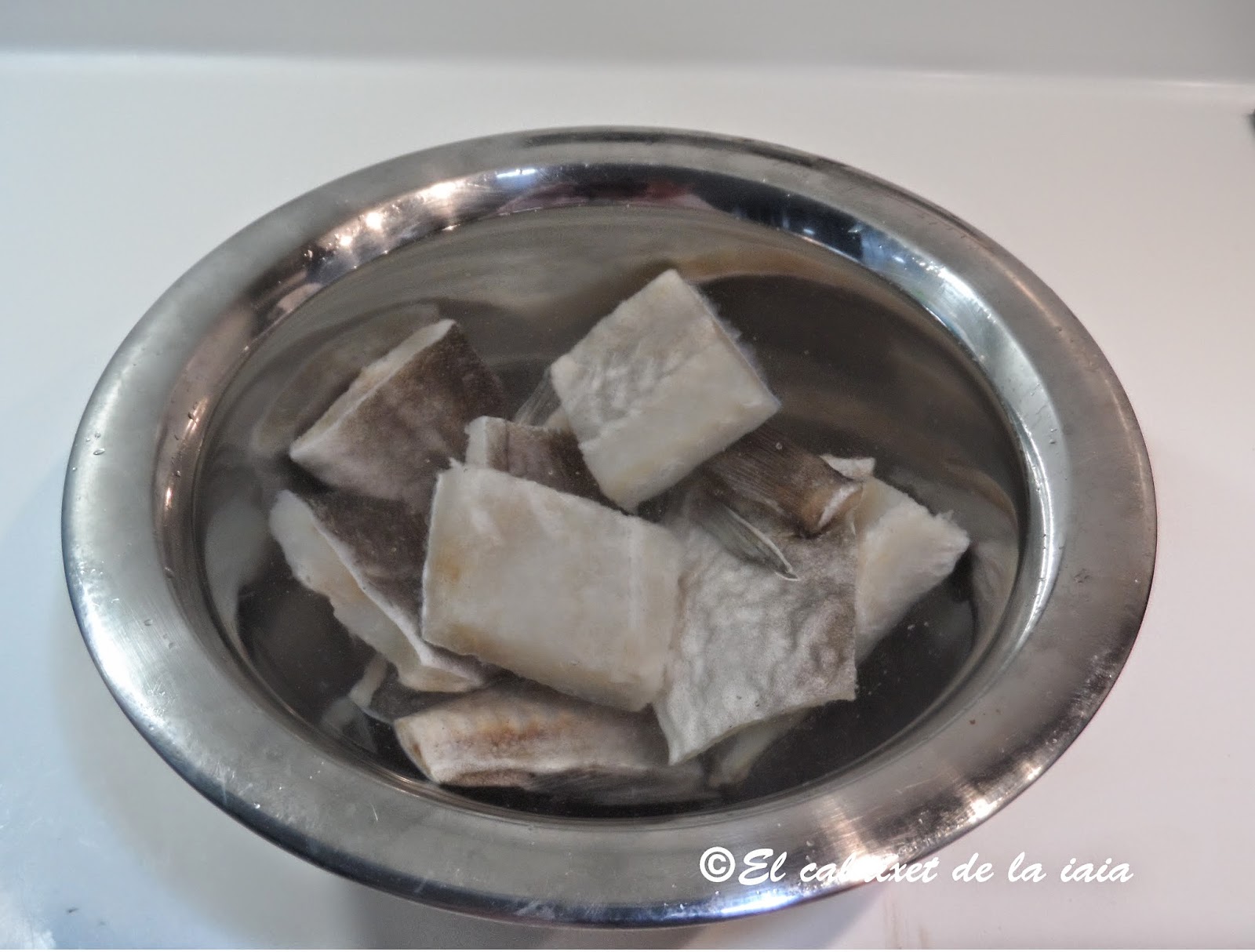 Como todos los platos con bacalao en salazón, hemos de empezar la preparación unas 24 horas antes