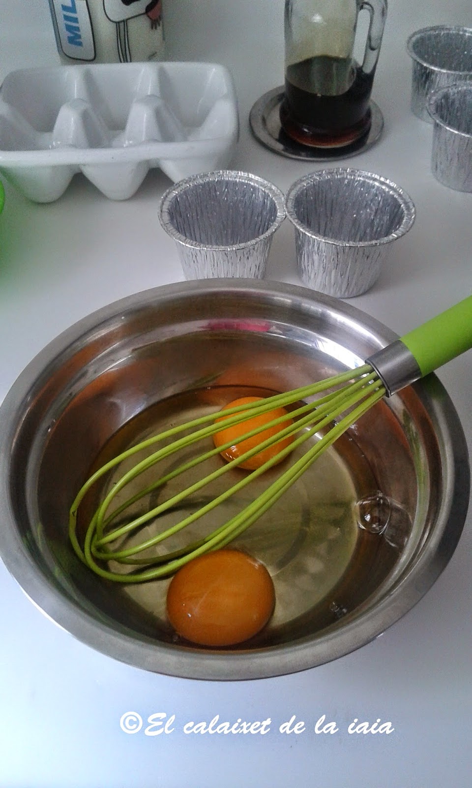 Caramelizamos los moldes.Yo uso mi caramelo que siempre tengo en la alacenahttps://elcalaixetdelaiaia.es/caramelo-casero-para-envasar